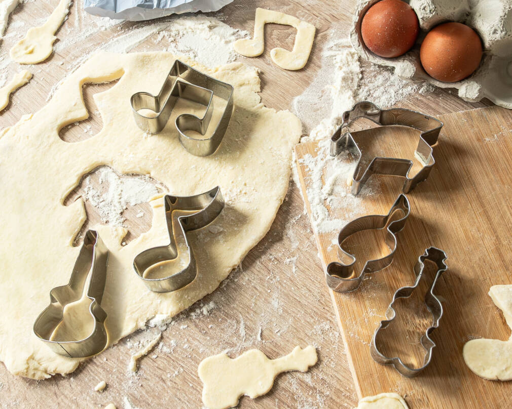 Unikāls muzikāls komplekts no 6 metāla cepumu formiņām, ne tikai mūzikas cienītājiem :) Cepumi nošu, ģitāras vai klavieru formā iepriecinās praktiski ikvienu, kura dvēselē ir mūzika, neatkarīgi no tā, vai viņam patīk spēlēt taustiņus vai stināt stīgu vai vienkārši patīk klausīties mūziku :) Muzikālo cepumu gatavošana noteikti būs dziedāšanas piedzīvojums, un, tos sagatavojot un izrotājot ar sev tuviem mīļajiem, kopā pavadītais laiks izrādīsies nenovērtējams! Muzikālie cepumi būs hits jebkurā ballītē un izgaismos daudzas sejas. Funkcijas: - metāla cepumu formiņas dažādās muzikālās formās - 6 gab. komplekts - mājās gatavoti un krāsnī cepti smieklīgi cepumi - izgatavoti no augstas kvalitātes pārtikas metāla - 6 dažādu muzikālu formu cepumu formiņu komplekts - noapaļotas malas augšpusē drošībai lietošana - ērti lietojama: no sagatavotās mīklas izgrieziet cepumus un cept cepeškrāsnī :) - viegli tīrāms un mazgājams trauku mašīnā - videi draudzīgs iepakojums