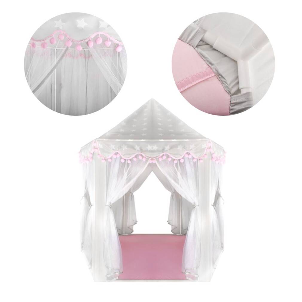 Bērnu telts pelēka-rozā