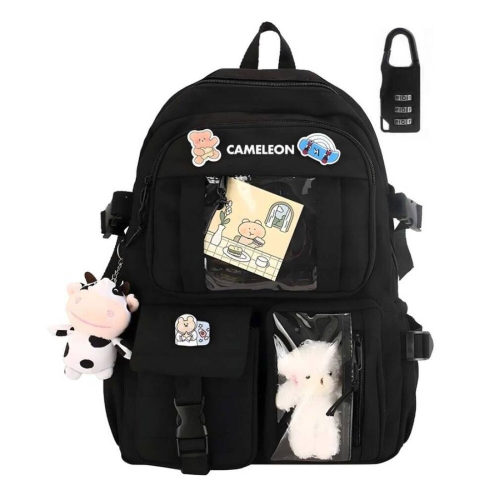 Šī soma ir izgatavota no ūdensnecaurlaidīga materiāla. Tā izmēri ir 44cm x 31cm x 14cm. Tam ir arī papildu lietas! Divi atslēgu piekariņi, kas ir veidoti kā govs un rotaļu lācītis, trīs