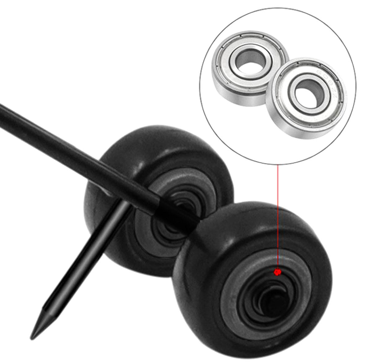 * Riteņu diametrs ir 49 mm un biezums 2,3 cm.
