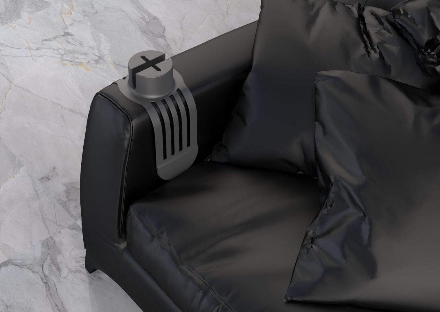 Daudzfunkcionāls un praktisks, izmantojams gan dzīvojamās istabas (uz dīvāna roku balstiem), gan automašīnās, gan pie peldbaseiniem.