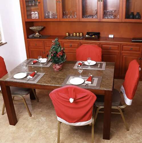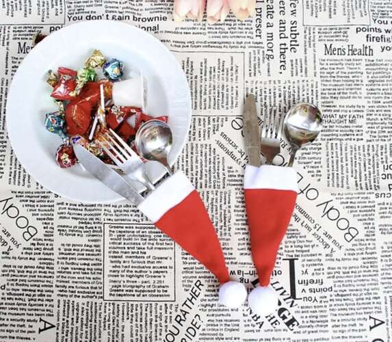 Apraksts: Galda piederumu kabatiņas 12 gab. Ziemassvētku vecīša cepures komplekts ir lieliski