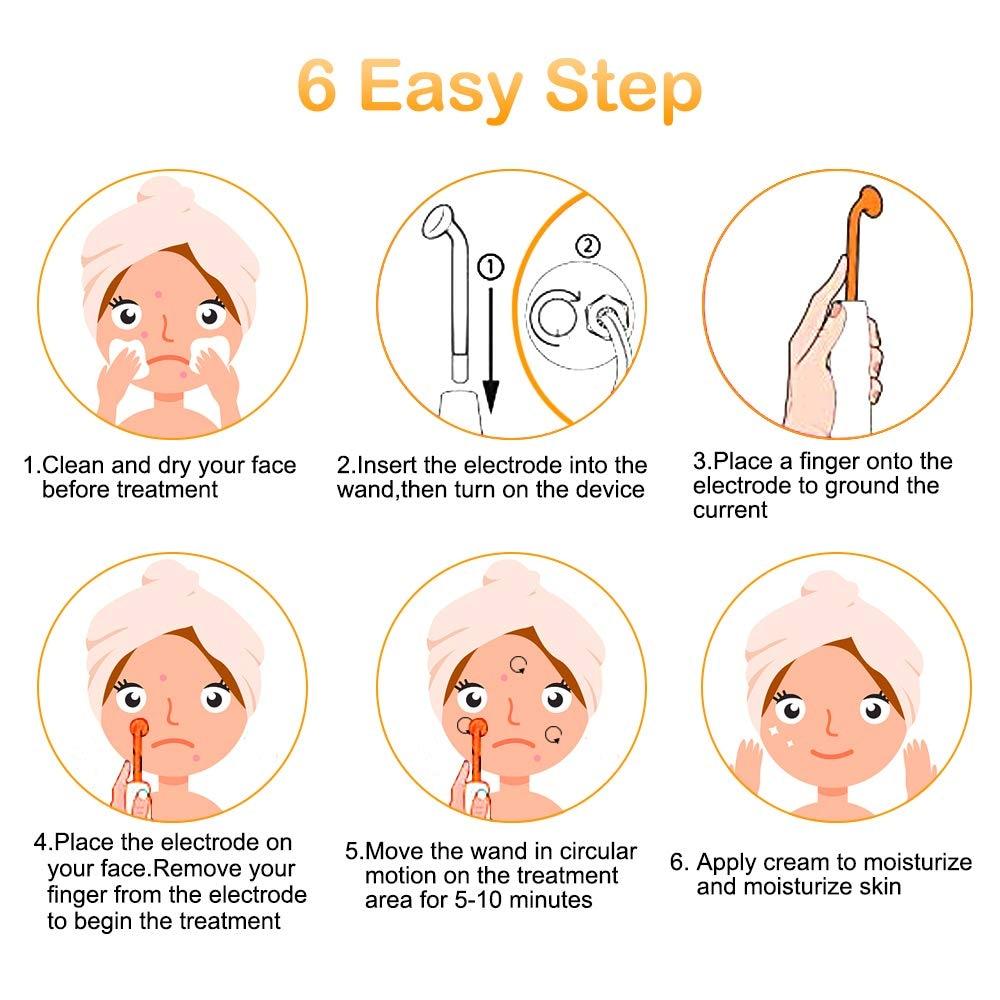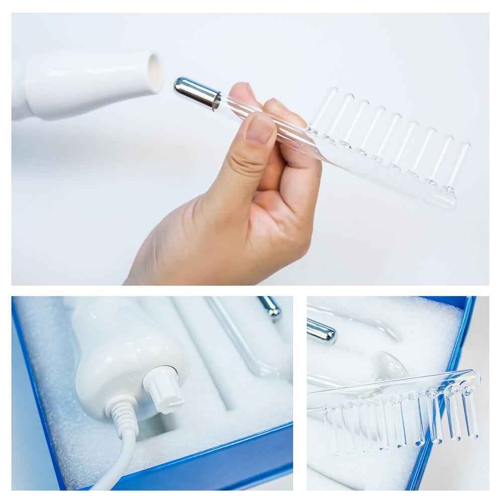 Lietošanai, ievietojiet vēlamo stikla elektrodu darsonvālā, viegli piespiediet elektrodu, un tas nofiksēsies vietā. Pēc tam pagrieziet slēdzi, darsonvāla apakšā un tas ieslēgsies. (Ieteicams vispirms pārbaudīt uzlikto jaudu uz rokas vai kājas).