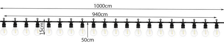 * Attālums starp katru spuldzi ir 50 centimetri.