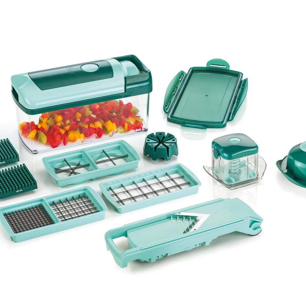 • Lieliska materiālu kvalitāte – augstas kvalitātes plastmasa un nerūsējošais tērauds padara dārzeņu griezēju par ideāli piemērotu ikvienai virtuvei.