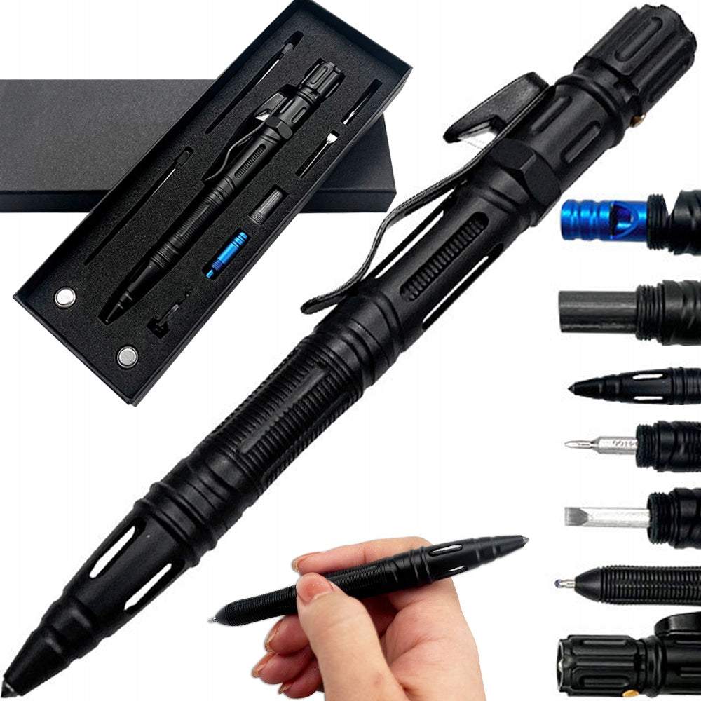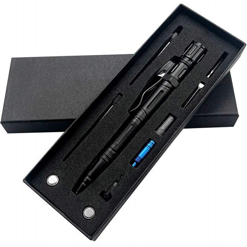 Tajā ir iebūvēts lukturītis, svilpe, nazis, plakanais un krustveida skrūvgriezis, fiksācijas klipsis, virves griezējs, logu laušanas rīks un krams. Pildspalvai ir 2x rezerves pildspalvu uzpildes un 2x rezerves bateriju komplekti, padarot to par daudzfunkcionālu integrētu daudzrīku ierīci, kas piemērota ārkārtas situācijām. Šo daudzpusīgo rīku parasti izmanto dažādās situācijās, piemēram, kempingos, pārgājienos un ekstremālās situācijās.