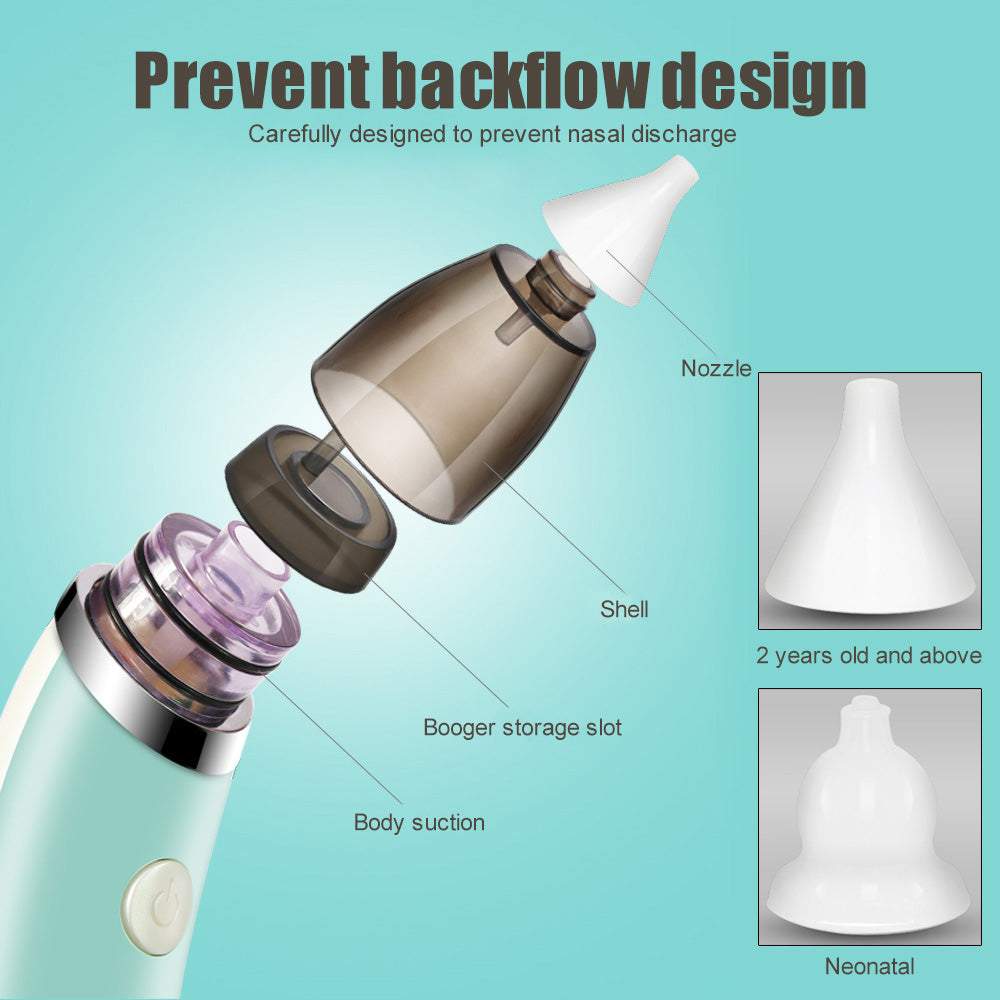 Klusa darbība – nav nepieciešams novērst mazuļa uzmanību, piemēram, atskaņojot mūziku. Divu izmēru uzgaļi, kas lietojami atkarībā no sekrēta daudzuma. Viegli tīrāms un kopjams – viegli sterilizējami deguna uzgaļi un konteiners. Nav jāiegādājas nekādi maināmie ieliktņi. Higiēniski – neizraisa kairinājumu. Ergonomiska forma – labi iederas rokā. Iebūvētais akumulators nodrošina ilgu darbības laiku pēc uzlādes. Uzlādē ar tradicionālo Micro USB lādētāju, kas ļauj uzlādēt aspiratoru praktiski visur. Augsta efektivitāte, pateicoties regulējamai pakāpeniskajai sūkšanas jaudai.
