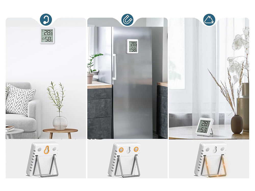 Digitālais termometrs mini meteoroloģiskā stacija istabas higrometrs ar akumulatora magnētu smaidoša seja Vai vēlaties parūpēties par pareizu klimatu savās mājās, birojā, siltumnīcā vai bērnu istabā? Digitālais termometrs ar higrometru ir maza, bet ārkārtīgi noderīga ierīce, kas palīdzēs jums uzraudzīt gaisa temperatūru un mitrumu, nodrošinot veselīgus un komfortablus apstākļus. ? Termometra funkcijas ✔️ Komforta displejs (smaidošas sejiņas veidā) ✔️ Pašreizējā temperatūra ✔️ Pašreizējais mitrums, pateicoties viegli nolasāmajam LCD displejam, parametru nolasīšana ir ātra un ērta, un intuitīvas smaidošas sejiņas ikonas nekavējoties norāda, vai mitruma līmenis ir pareizajā līmenī. ✔️ Skumja smaidoša seja norāda uz pārāk sausu vai pārāk mitru gaisu, ✔️ Smaidoša seja norāda uz optimāliem apstākļiem (40–70%). ? Pielietojuma piemērs ✔️ Mājās un dzīvoklī – temperatūras un mitruma uzraudzība uzlabo dzīves komfortu un novērš problēmas ar sausu vai pārmērīgi mitru gaisu. ✔️ Mazuļa istabā – nodrošina pareizos apstākļus zīdaiņiem un maziem bērniem, palīdzot uzturēt veselīgu iekštelpu klimatu. ✔️ siltumnīcā un ap podos audzētiem augiem — ideāli piemērots augu mīļotājiem, kuriem nepieciešams kontrolēt mitruma un temperatūras līmeni. ✔️ telpās ar mūzikas instrumentiem — palīdz uzturēt optimālu mitruma līmeni, kas aizsargā koksni no deformācijas. ✔️ birojā un darba vietā — nodrošina ērtu darba vidi, uzlabojot labsajūtu. ✔️ noliktavās un pieliekamajos — kontrolē uzglabātās pārtikas vai aprīkojuma, kas ir jutīgs pret vides apstākļiem, temperatūru un mitrumu. ? Tehniskās specifikācijas: - izgatavots no augstas kvalitātes materiāliem - moderns dizains - bezvadu - temperatūras diapazons: (Celsija) (Fārenheita grādi) - temperatūras mērījumu precizitāte: rādījumiem Celsija grādos - mitruma mērījumu diapazons: precizitāte: - temperatūras un mitruma displejs - temperatūras diapazons no - mitruma diapazons: - temperatūra: °C, °F - barošanas avots: ? izmēri: - augstums: - platums: - dziļums: - displeja izmēri: ? komplektā ietilpst: - meteoroloģiskā stacija