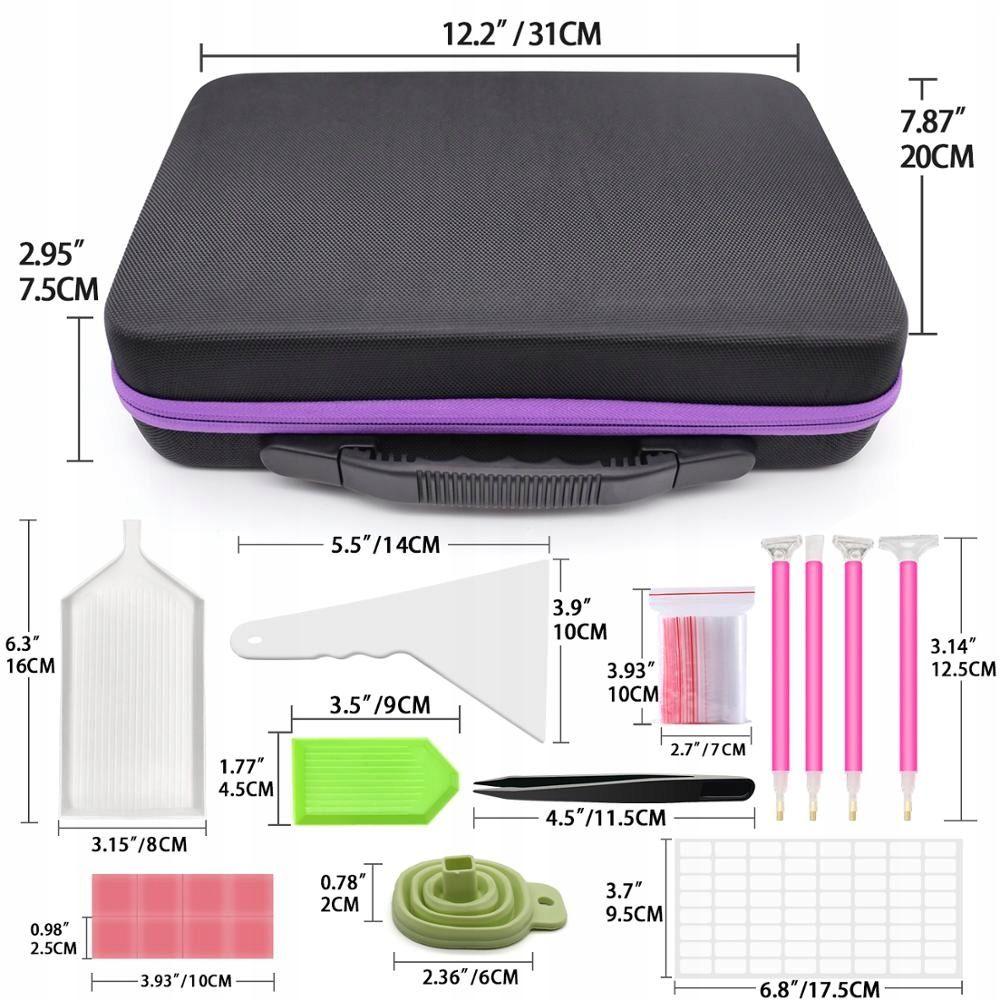 Pilns dimantu izšūšanas piederumu komplekts. Hobijam, kas kļūst arvien populārāks visā pasaulē, tagad ir vairāki īpaši instrumenti un ierīces, kas padara dimantu izšūšanu vēl patīkamāku, relaksējošāku un pēc iespējas precīzāku. Ja vēlaties, lai jūsu gleznas tiktu izgatavotas ar pienācīgu rūpību, nemeklējiet tālāk, jo šis komplekts ir tas, kas jums nepieciešams!