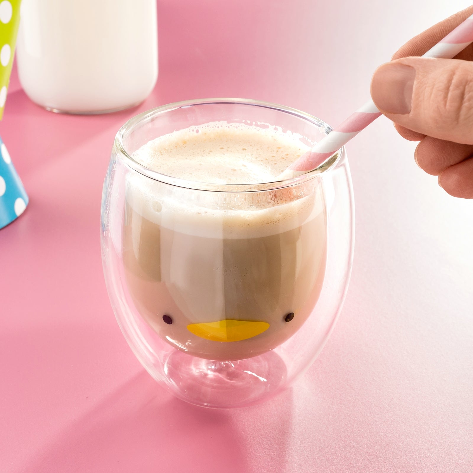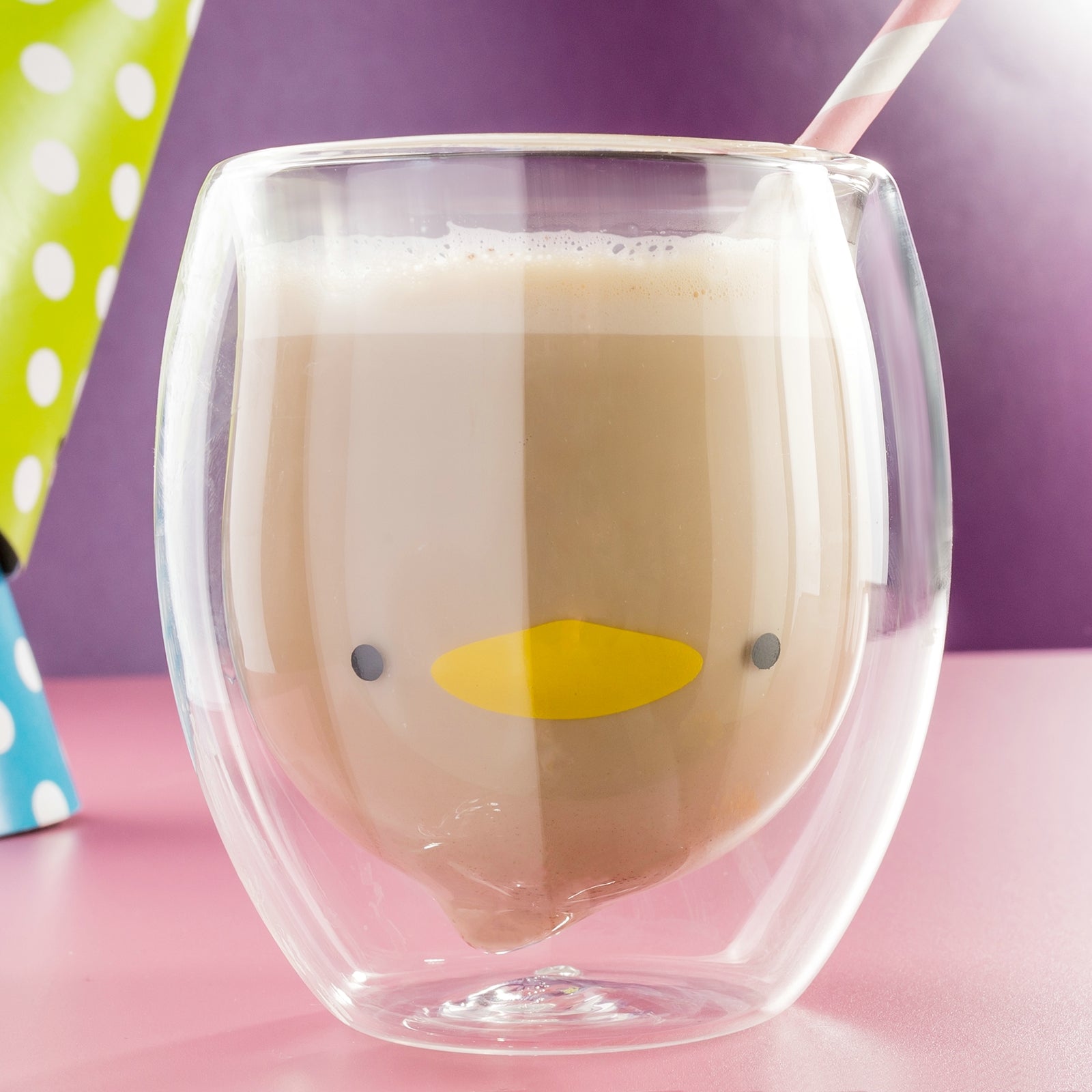 Šis burvīgais dubultsienu pīles formas glāze ir ideāls papildinājums jūsu virtuvei, kas izcelsies uz pārējo fona. Tā jaukais dizains noteikti padarīs jūsu dienu gaišāku! Tā ir lieliska dāvana, ja vēlaties likt adresātam pasmaidīt neatkarīgi no vecuma un gadījuma. :) Funkcijas: - jauks pīļu glāze ne tikai bērniem - dubultsienas, lai aizsargātu pirkstus no karstuma un aukstos dzērienus ilgāk saglabātu atdzesētus - Dia.: 8.4cm augsts: 9 cm - materiāls: augsts borsilikāta glāze: - netoksiska un droša gluda iekšējā virsma - viegli tīrāms, izturīgs un praktisks - piezīme: nav piemērots mikroviļņu krāsnī vai trauku mazgājamajā mašīnā - mazgājams tikai ar rokām - jaukas krāsas dāvanu kastīte
