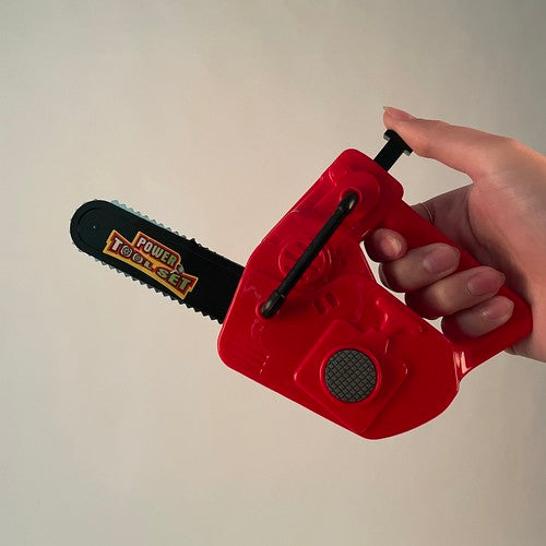 Šajā komplektā ietilpst rotaļu motorzāģis, kas faktiski rada skaņu un kustas,