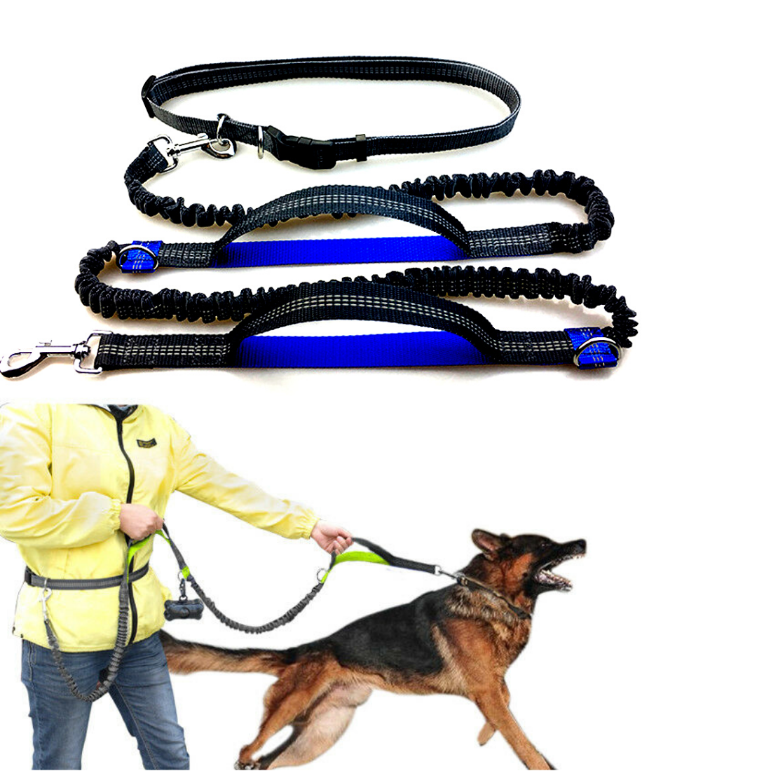 Suņu siksna, brīvroku pavada skriešanai, regulējama