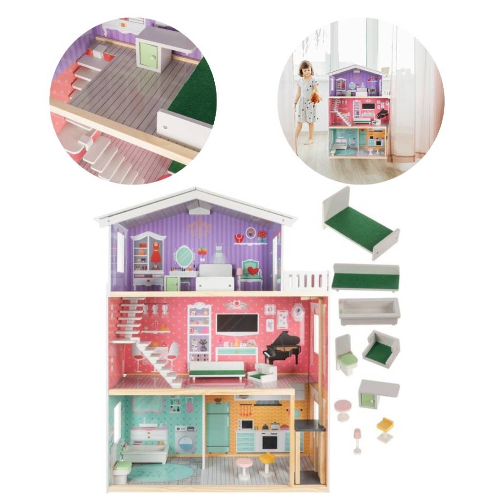 villa, kas aprīkota ar mēbelēm un pat liftu. Šī māja ir paredzēta divām lellēm, tā ir kā trīsstāvu māja ar 4 istabām un balkonu. Namiņš izgatavots no izturīga koka, lai nodrošinātu drošību, kamēr bērni spēlējas.