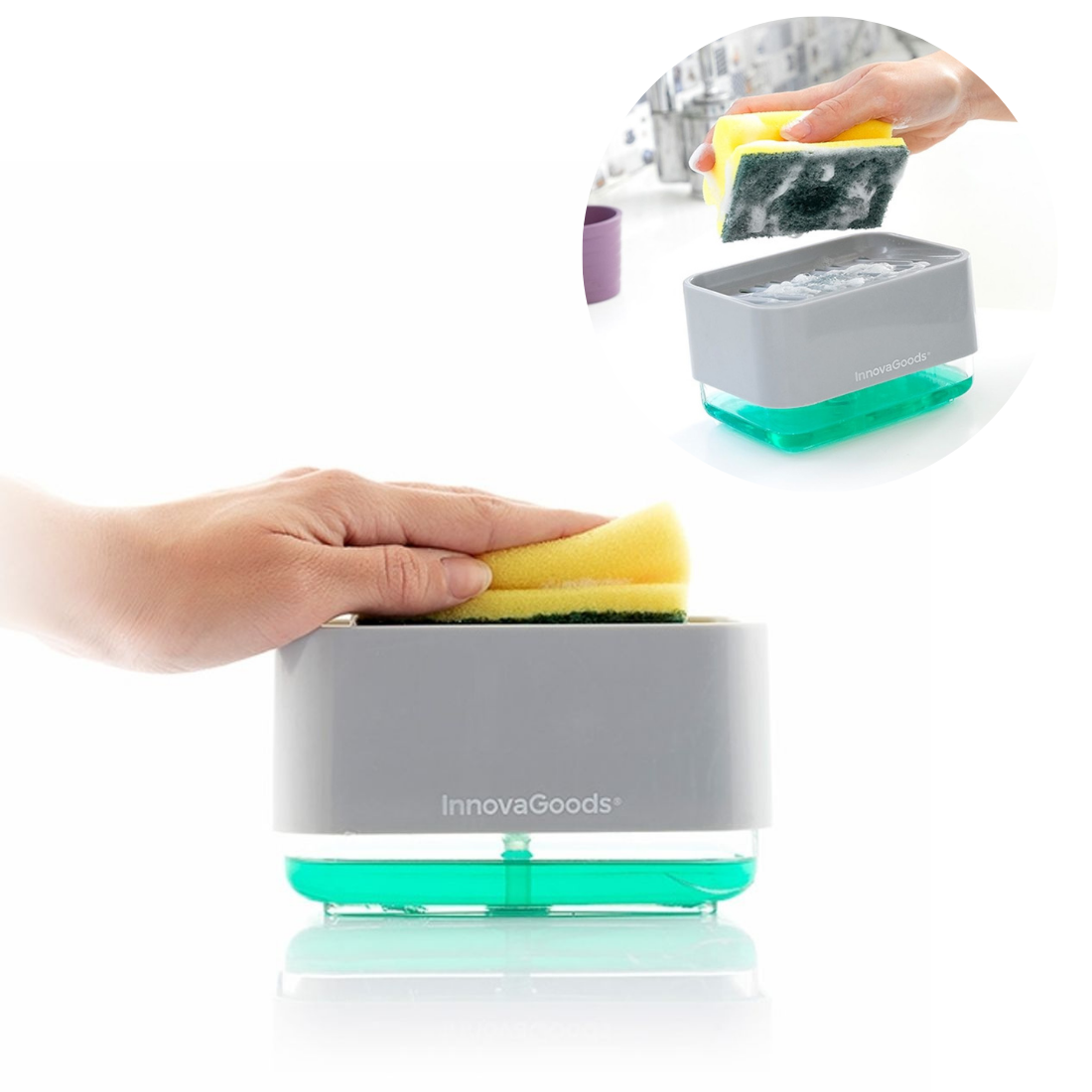 Ziepju dozators virtuves švammēm, turētājs 2in1