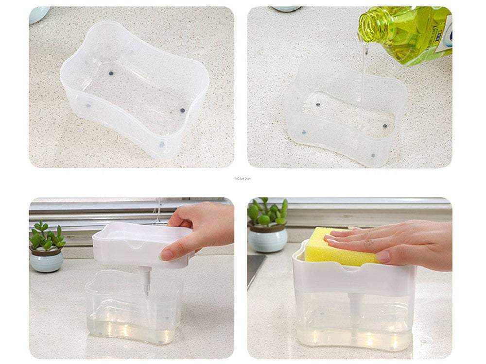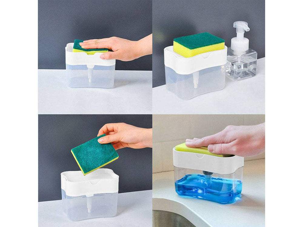 Šķidru ziepju dozators virtuves švammēm, turētājs 2in1