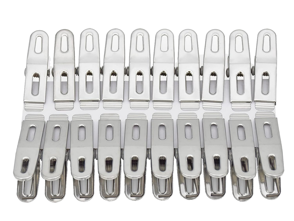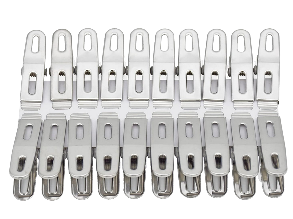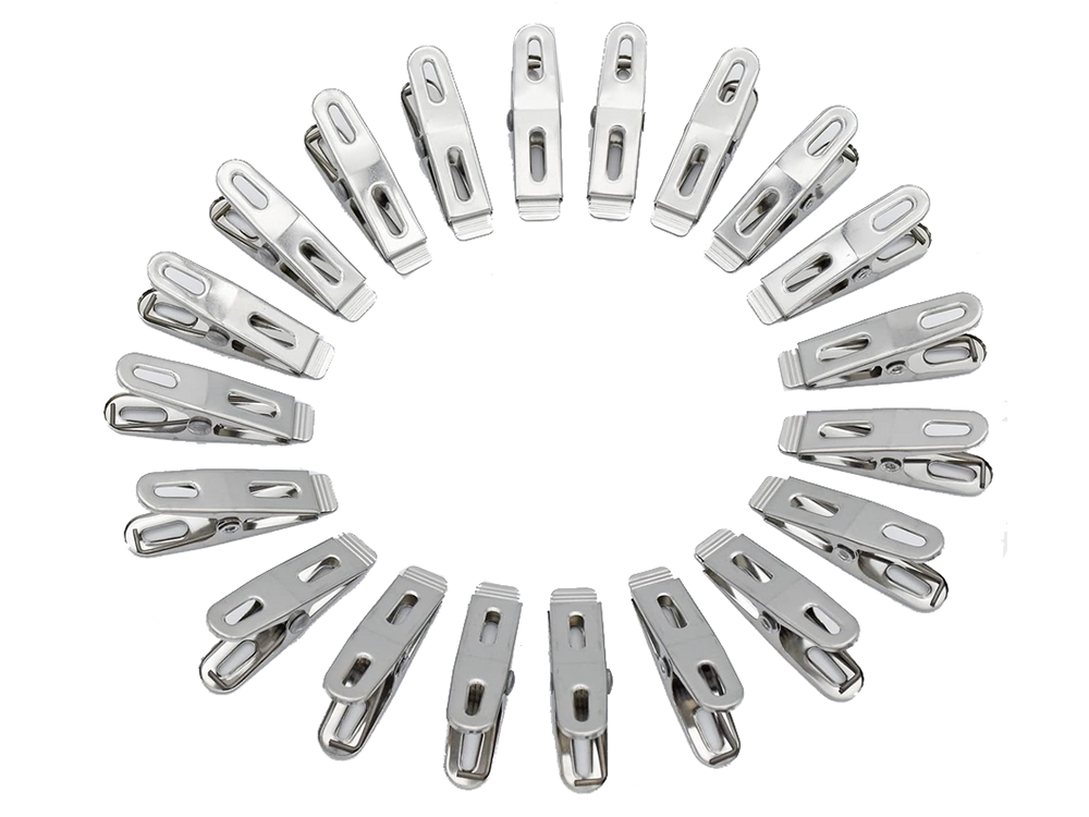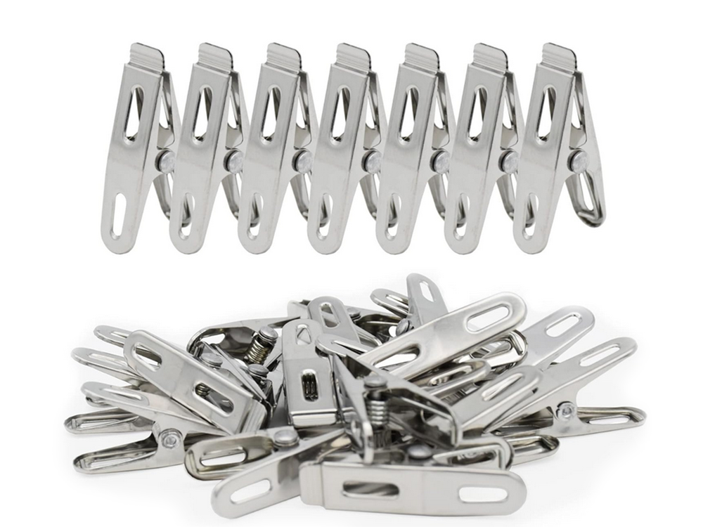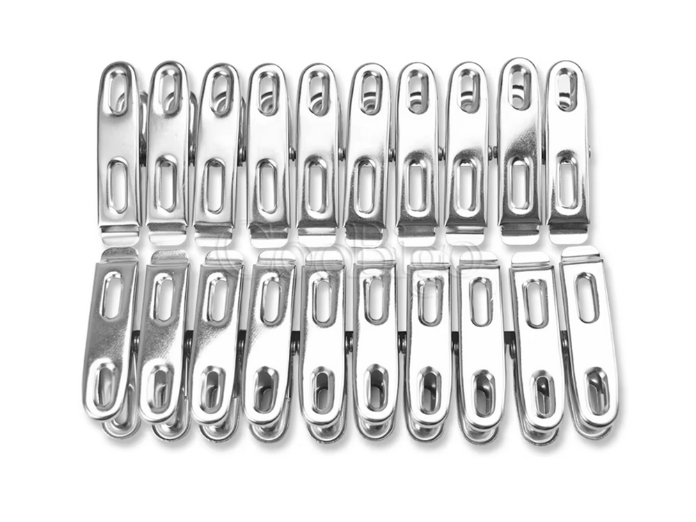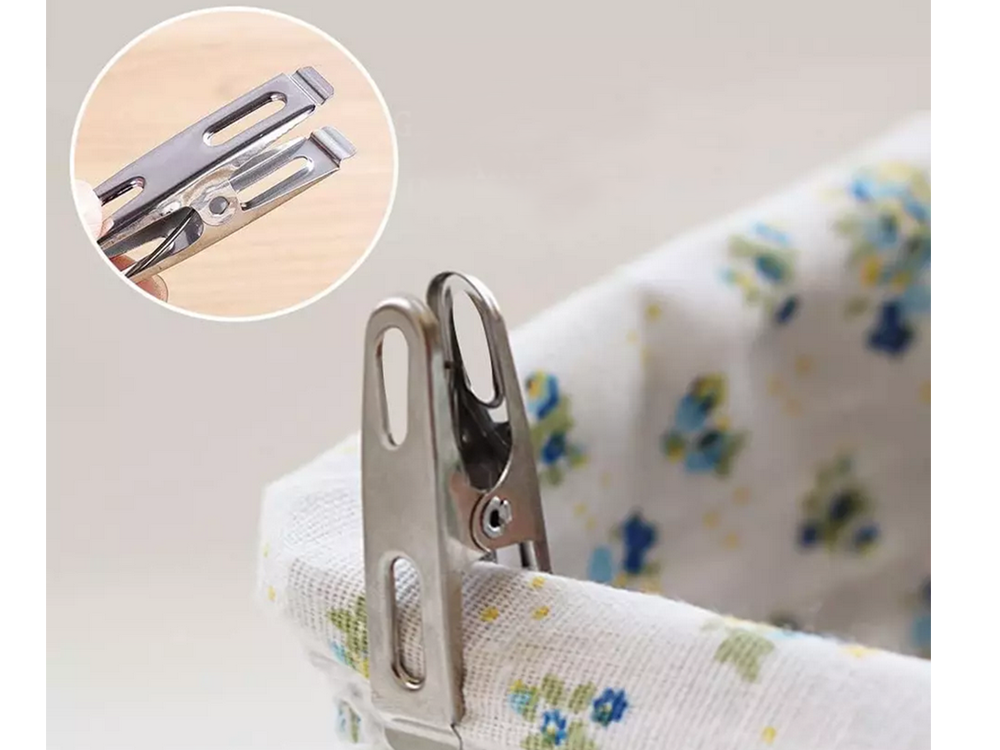 Drēbju klipši apakšveļas mazgāšanai, 20 gab. metāla vardes, izturīgas, praktiskas un ilgmūžīgas metāla klipši, ideāli piemēroti veļas un apģērba pakarināšanai uz žāvētāja vai veļas auklas. Komplektā ietilpst, padarot tos neaizstājamus jebkurās mājās. Izgatavoti no izturīga metāla, tie ir izturīgi pret bojājumiem un nodrošina drošu fiksāciju pat vējā. Metāla veļas knaģiem ir daudz papildu pielietojumu papildus apģērba pakarināšanai: - piezīmju piespraušanai - tie var kalpot kā biroja klipši dokumentiem vai piezīmēm. - paku aizvēršanai - lieliski piemēroti uzkodu, kafijas vai garšvielu maisiņu aizvēršanai. - DIY dekorācijām - noderīgi rokdarbu vai pakaramo veidošanai svētkiem. - garšaugu vai ziedu žāvēšanai - var izmantot žāvētu augu pakarināšanai. Tehniskās specifikācijas: - materiāls: metāls - · universāls - krāsa: sudraba. Komplektā ietilpst: - veļas knaģu komplekts, 20 gab.