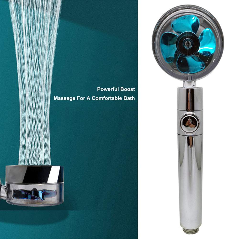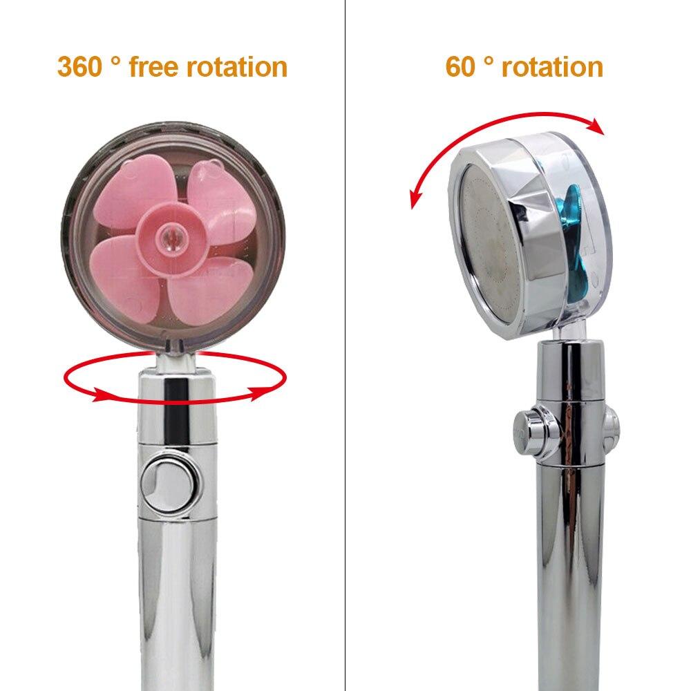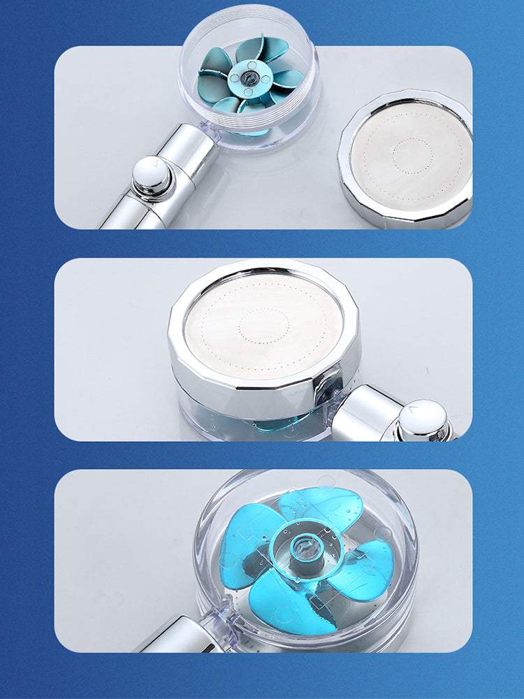 Dušas galvas klausule ar turbīnu ventilatoru ūdens taupīšanai un spiediena palielināšanai