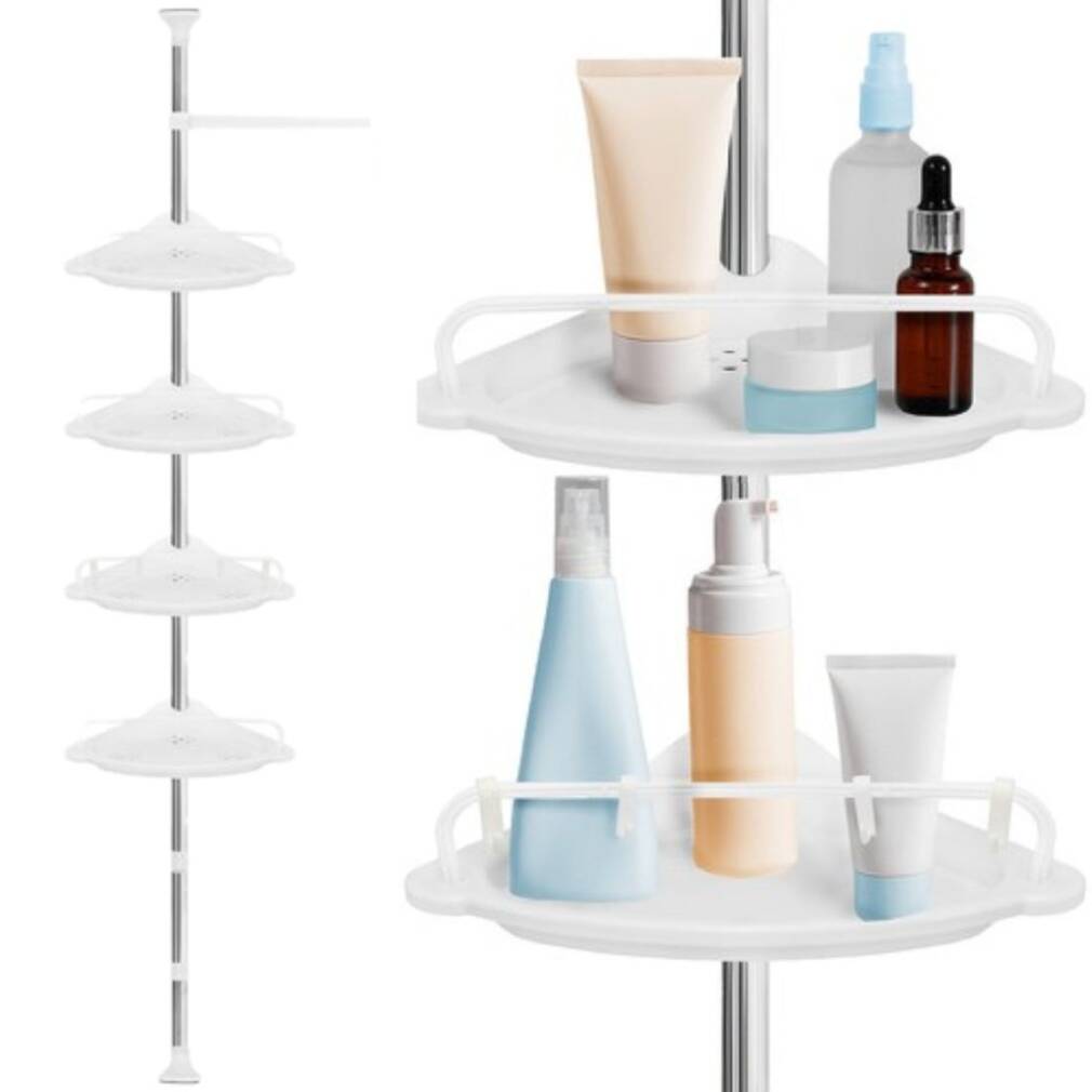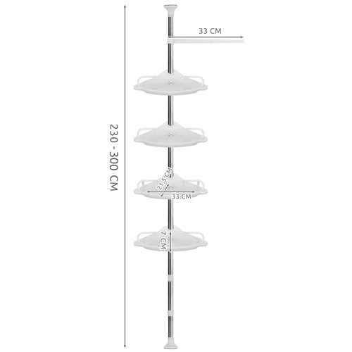 Regulējamais stūra dušas plaukts ir no 230 līdz 300 cm augsts un ļauj sakārtot