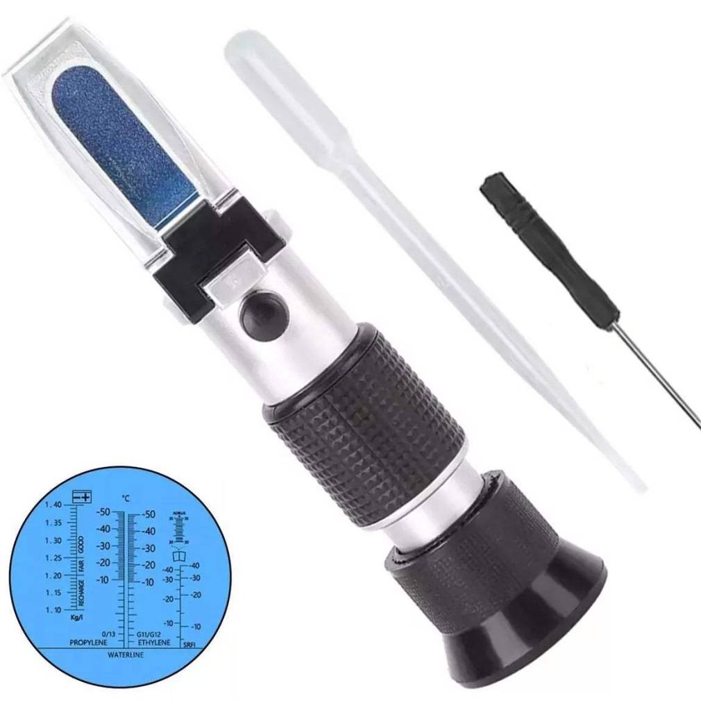 Kompakts, optiskais auto ekspluatācijas šķidrumu testeris. Tas ļauj nekavējoties izmērīt elektrolīta saturu akumulatorā un dzesēšanas šķidrumu un šķidrumu uz glikola bāzes sasalšanas punktu. Vienkārši paņemiet šķidruma paraugu ar pipeti, novietojiet paraugu uz refraktometra vadības paneļa un nolasiet indikāciju, izmantojot skatu meklētāju.