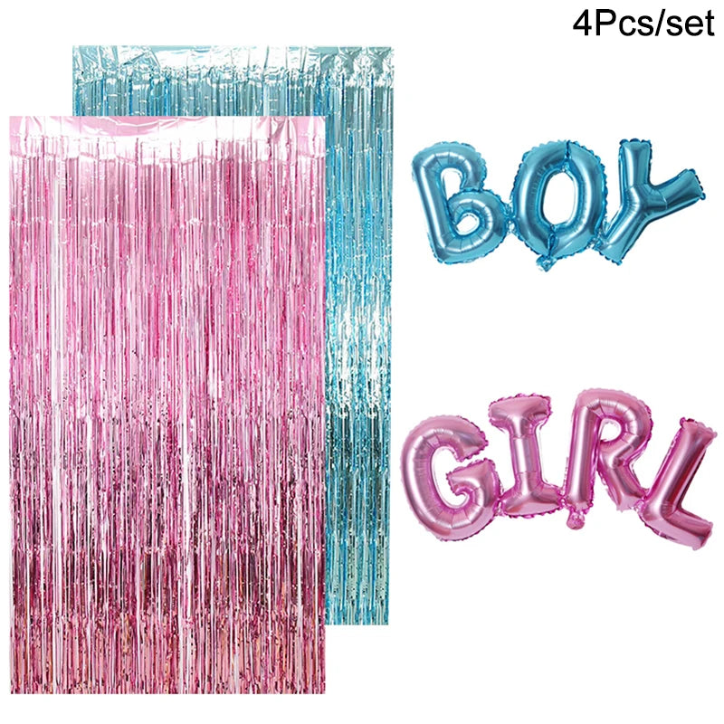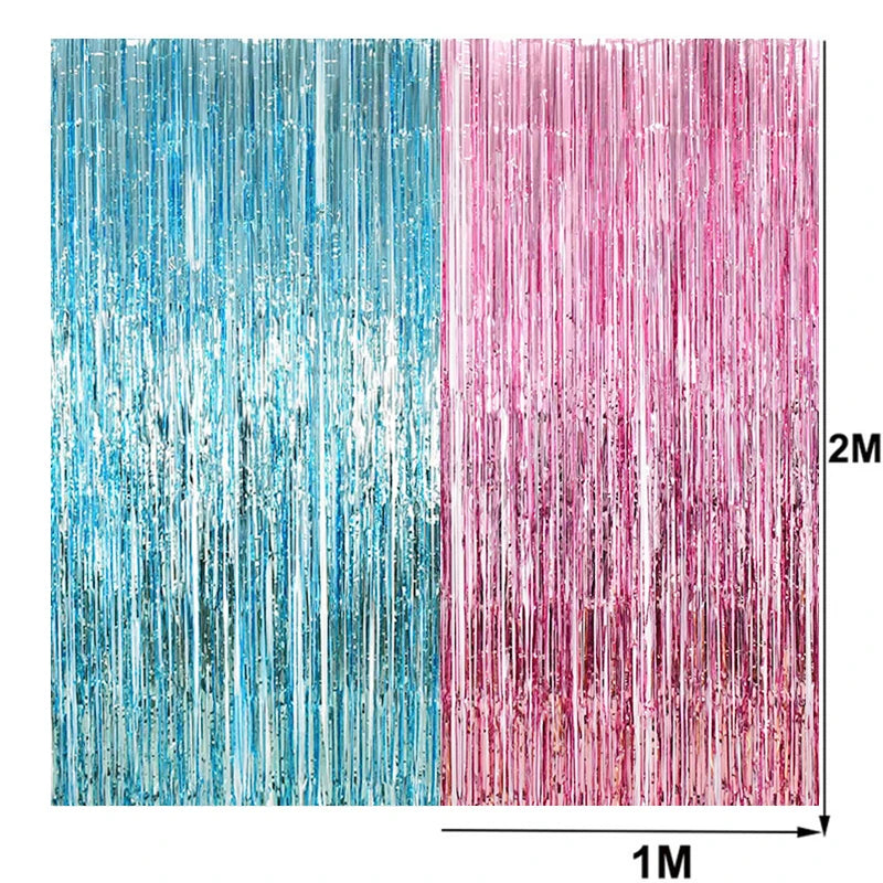 Dzimuma atklāšanas ballītes foto fons, aizkars ar bārkstīm