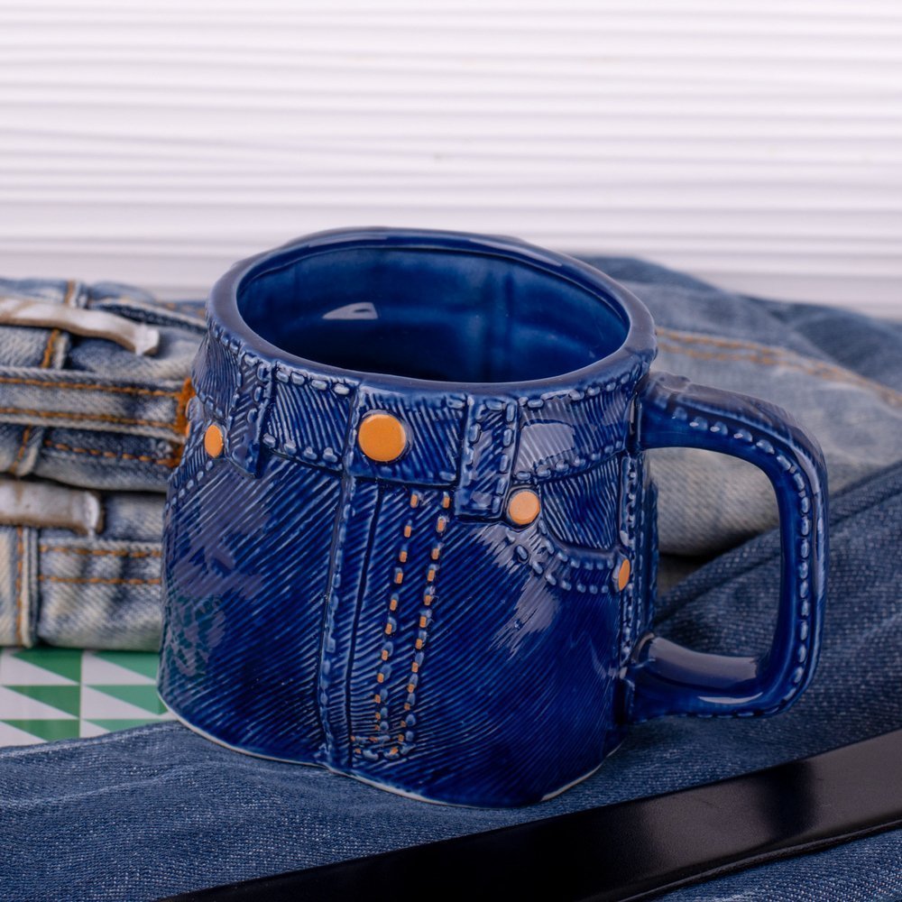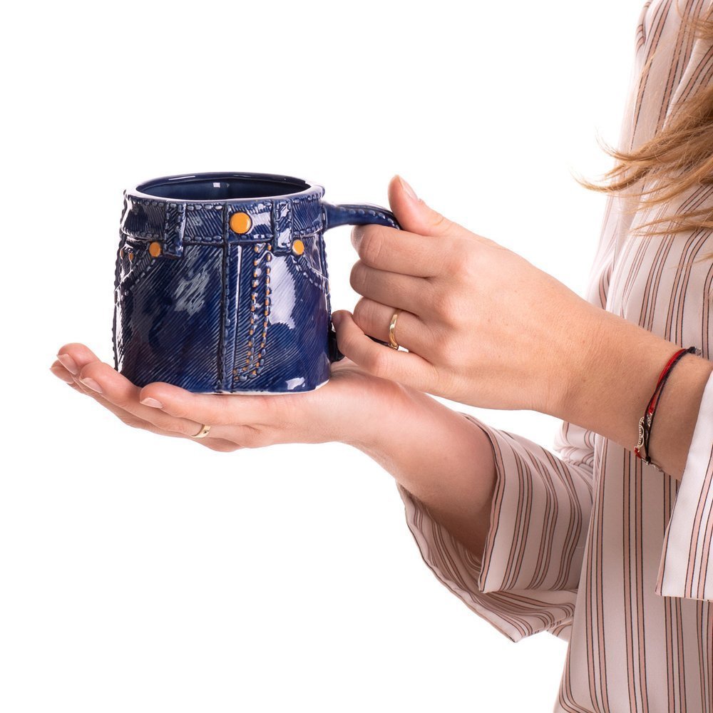 Paspilgtiniet savas mājas dekoru ar šo stilīgo un radošo džinsu krūzi. Krūzei ir zilu džinsu forma, kas sniedz mums pazīstamības un unikalitātes sajūtu. Krūze ir no keramikas. To izmanto ne tikai karsto dzērienu dzeršanai, bet arī dekorēšanai un biroja mazajam aprīkojumam. Funkcijas: - džinsu krūze gandrīz kā īstas zilas džinsu bikses ;) - jauka krūze, dekors un turētājs vienlaikus - pogas, kabatas, šuves - visas detaļas labi redzamas - roku krāsojums