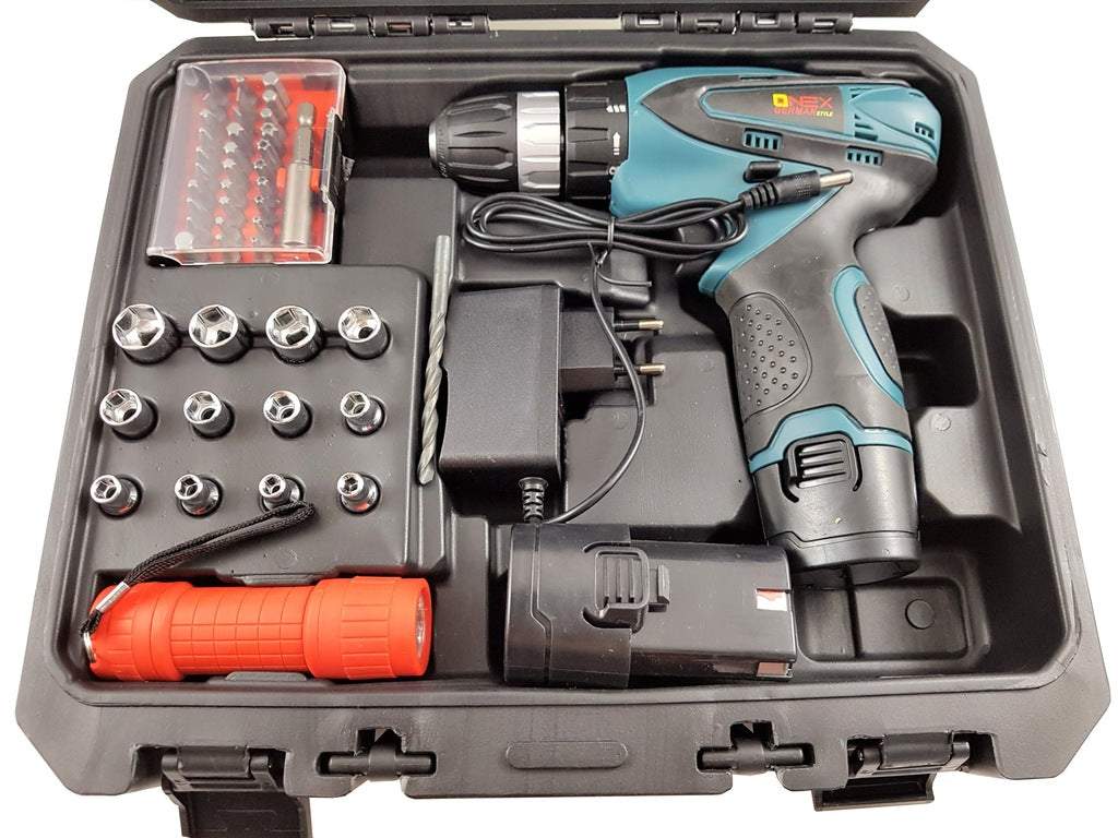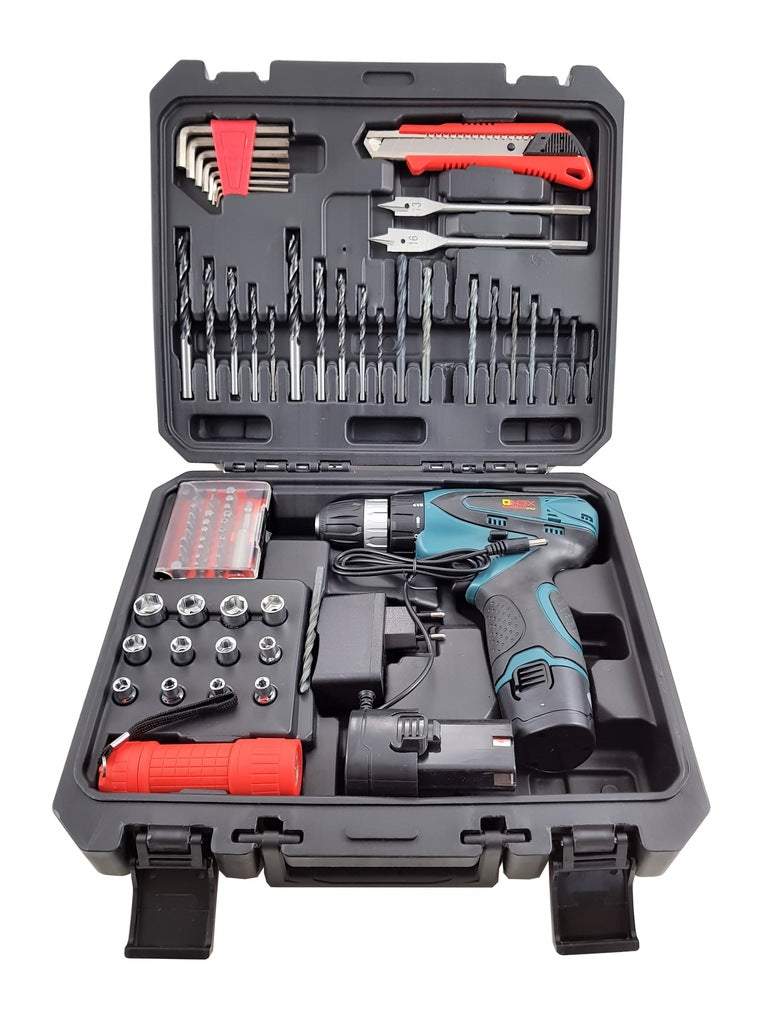 Elektriskais skrūvgriezis - urbjmašīna ar diviem akumulatoriem - 77 elementi komplekts