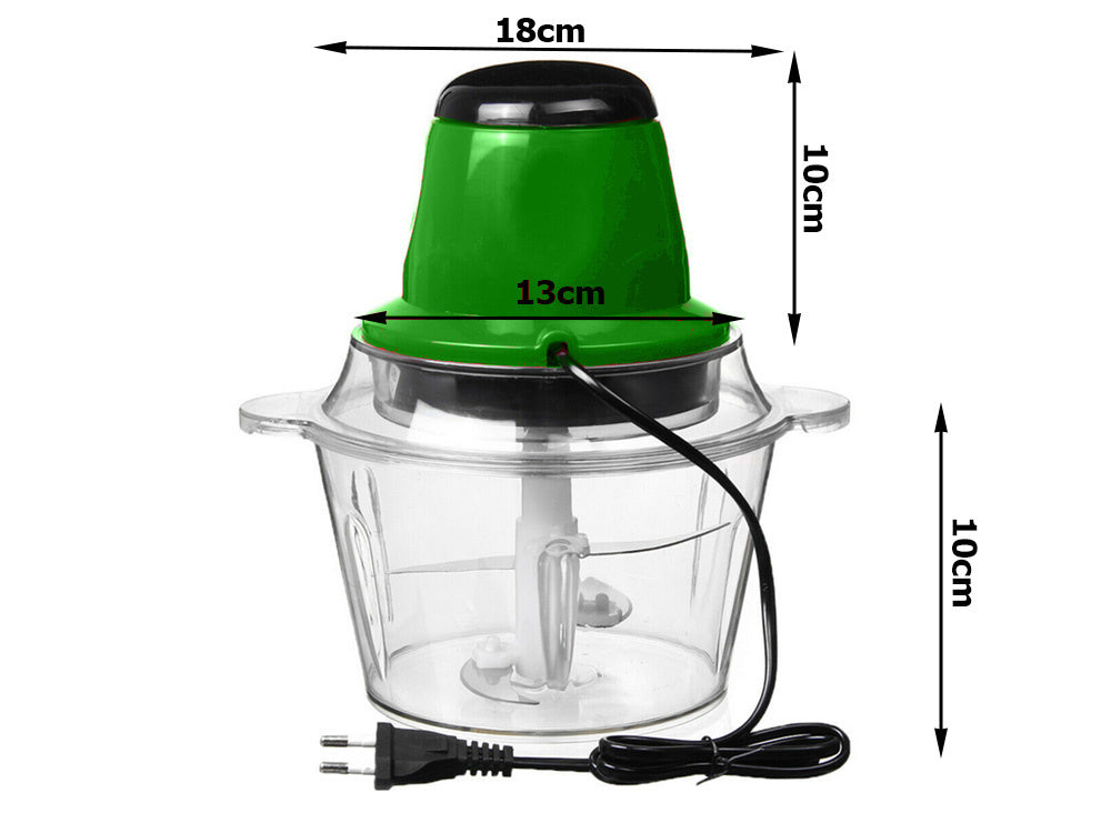 Elektriskais augļu smalcinātājs, dārzeņu smalcinātājs, gaļas smalcinātājs. Elektriskais dārzeņu un augļu smalcinātājs ir ierīce, kas ir neaizstājama ikvienā virtuvē. Ierīce ir aprīkota ar lielu tvertni sastāvdaļu sagatavošanai salātiem, zupai, pankūkām vai citiem iecienītākajiem ēdieniem. Smalcinātāju ir ļoti viegli lietot. Vienkārši ievietojiet nepieciešamās sastāvdaļas tvertnē, pievienojiet to elektrotīklam un izmantojiet pogu ierīces augšpusē, lai iedarbinātu smalcinātāju. Ierīce ir aprīkota ar četrkāršu nerūsējošā tērauda asmeni, stabilā pamatne ļauj droši lietot smalcinātāju. Tehniskās specifikācijas: · produkta kods: · četri nerūsējošā tērauda asmeņi · tvertnes tilpums: aptuveni 1600 ml - caurspīdīgs tvertne - viegli ieslēdzams, nospiežot pogu - ātra smalcināšana: - barošanas avots: tīkls 220 - 240 V 50/60 Hz - jauda: - nelietojiet nepārtrauktā darbībā ilgāk par 30 sekundēm - strāvas vada garums: - uzmanību. nemazgājiet trauku mazgājamajā mašīnā - pirms ierīces ieslēgšanas uzmanīgi uzlieciet tvertni ar augšējo elementu. - krāsa: zaļa. Komplektā ietilpst: - elektriskais dārzeņu un augļu smalcinātājs