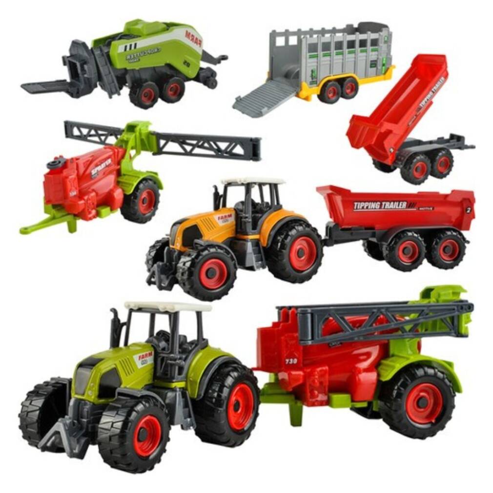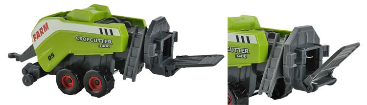 detalizēts dizains. Tajos ir kustīgas sadaļas, kas atdarina reālu lauksaimniecības aprīkojumu, padarot spēlēšanu patīkamāku. 6 daļu komplekts, kas ļauj izlikties, ka strādājat fermā.