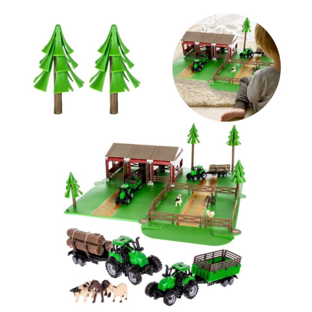 Apskatiet mūsu lielisko fermu ar dzīvniekiem un traktoriem! Tajā ir iekļauti 102 elementi, kas ļauj izveidot savu mini fermu. Detaļās ir tādas lietas kā koki,