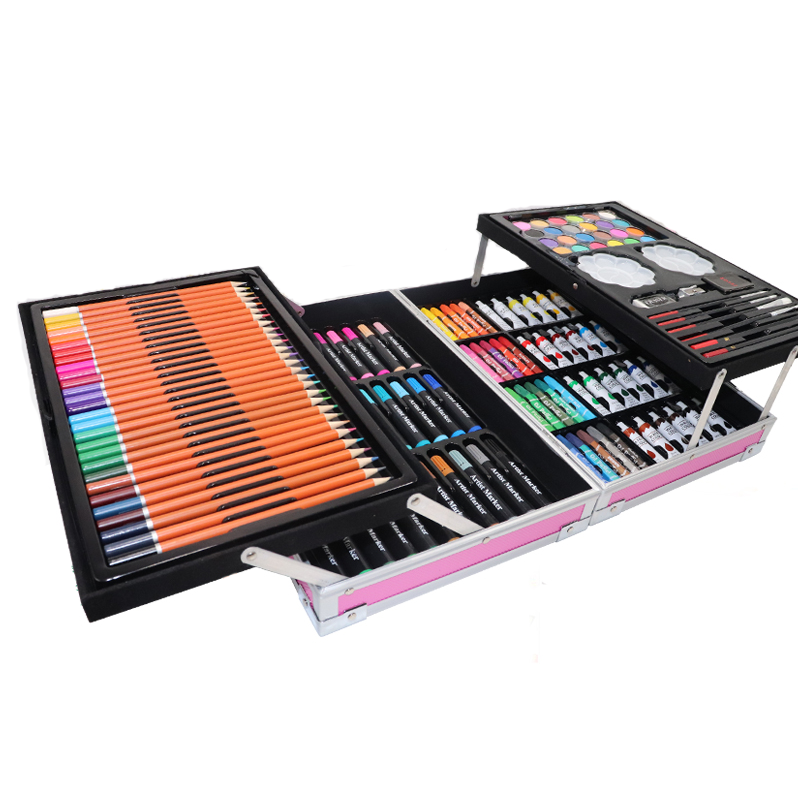 Mākslas komplekts ir ievietots glītā, aizslēdzamā koferī, kas izgatavots no izturīgas plastmasas. Pateicoties ērtajam rokturim, komplektu var paņemt līdzi jebkur.