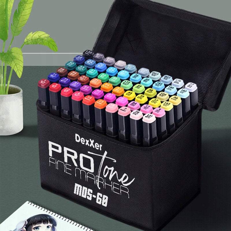 60 dažādu piesātinātu krāsu marķieru komplekts ir piedāvājums visiem, kas tikai uzsāk savu zīmēšanas piedzīvojumu, un, kas zīmē katru dienu. Marķieru sastāvā esošās spirta tintes perfektā pigmentācija garantē, ka ar tām veidotie zīmējumi būs piesātināti, dzidri un ilgstoši neizbalēs.
