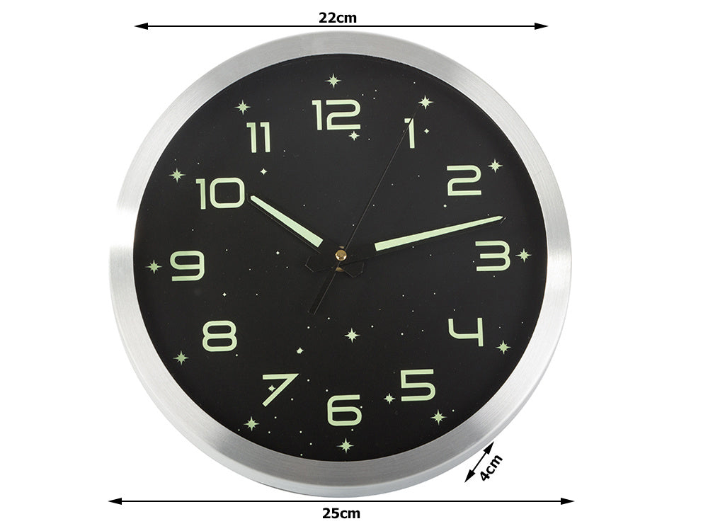 Fluorescējošs liels fluorescējošs sienas pulkstenis ar gaismas zvaigznēm 25 cm