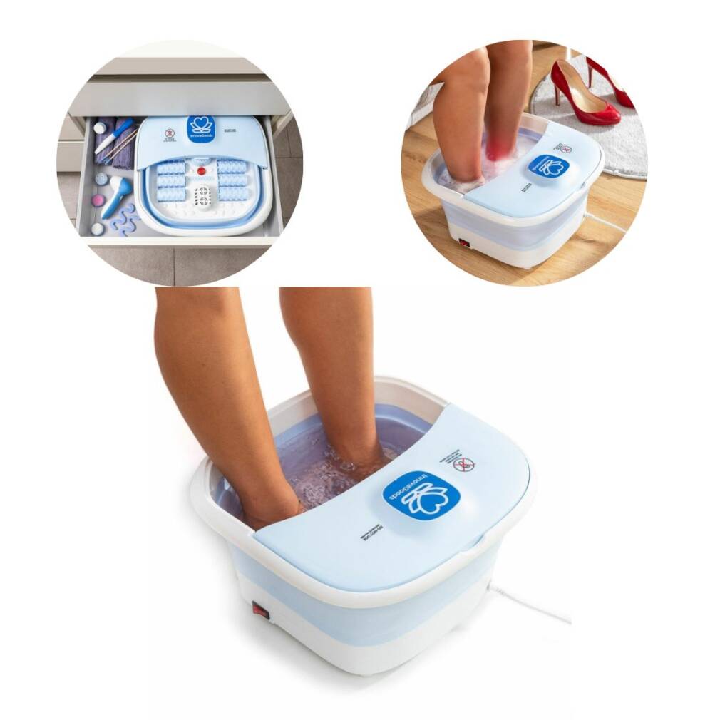 * Pārvietojamība: Šis kāju spa ir salokāms, padarot to viegli uzglabājamu un
