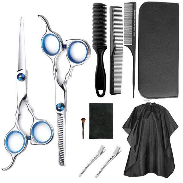 Matu griešanas komplets (frizieru šķēres, ķemmes, priekšauts)