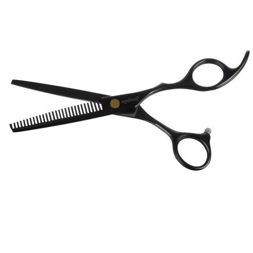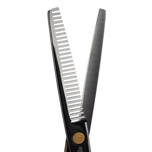 Profesionālas frizieru šķēres, retināšanas šķēres ergonomiska forma + pirkstu balsts - frizieru šķēres ir vieglas un ergonomiskas, kas nodrošinās Jums komfortu ilgstoša darba laikā. To atbilstoši profilētie rokturi atvieglo stingru satvērienu un precīzu manevrēšanu griešanas laikā. Turklāt tām ir pirkstu balsts. Silikona buferis - šķērēm ir silikona buferis, kas absorbē triecienus aizvēršanās laikā. Šis risinājums neļaus Jūsu rokai nogurt. Robains - šķēres ir robotas vienā pusē. Tās ir retināšanas šķēres ar vienmērīgi izvietotiem zobiem ar atstarpēm. To uzdevums ir nogriezt līdz pat 50% no satvertajiem matiem. Tās tiek izmantotas, lai retinātu noteiktas frizūras daļas, piemēram, lai mīkstinātu bārkstiņu līniju vai ēnotu. Destiny - frizieru šķēres ir ideāli piemērotas gan frizētavu darbiniekiem, gan lietošanai mājās. Specifikācija - krāsa: melna; vienpusējs robojums: jā; temperatūras un mitruma izturība: jā; zobu skaits: 28; labročiem: jā; pirkstu caurums: 2,5 cm; asmens garums: 6,5 cm; izmēri: 17,5 x 5,5 cm; svars: 65 g; Svars iepakojumā: 76 g. Specifikācija Krāsa: melna Vienpusējs robojums: jā Temperatūras un mitruma izturība: jā Zobu skaits: 28 Labročiem: jā Pirkstu atvere: 2,5 cm Asmens garums: 6,5 cm Izmērs: 17,5 x 5,5 cm Svars: 65 g Svars iepakojumā: 76 g Komplektā šķēres Matu retināšanas šķēres ir šķēres, kas padara kontūru izlīdzināšanu vai vienkārši ēnošanu vienkāršu un ērtu. Ļoti asi asmeņi ļaus jums sasniegt perfektu griezumu vienā kustībā. 28 zobi vienlaikus noķers lielu skaitu matiņu, kas paātrinās griešanas procesu. Mikrouzasināti asmeņi garantēs veselīgu matu galu ataugšanu, un ergonomiskais dizains atslogos jūsu roku un nodrošinās patiesu darba komfortu. No nerūsējošā tērauda izgatavotie asmeņi pasargās tos no korozijas un ļaus jums daudzus gadus baudīt jūsu pārbaudītās, lieliski griezošās matu retināšanas šķēres. Izturīgais tērauds nodrošinās šķēru izturību. Brīdinājums Saturs: 1. Izmantojiet šķēres tikai matu griešanai un izvairieties tās izmantot citiem mērķiem, piemēram, iepakojumu atvēršanai vai audumu griešanai. 2. Neatstājiet šķēres bez uzraudzības, īpaši vietās, kur tās var būt pieejamas bērniem vai nepiederošām personām. 3. Izvairieties staigāt ar atvērtām šķērēm rokās vai neturēt tās pārnēsājamās ierīcēs, lai izvairītos no nejaušiem griezumiem. 4. Uzmanīgi turiet šķēres rokā, izmantojot atbilstošu satvērienu un uzmanīgi rīkojoties ar instrumentu. 5. Pirms lietošanas pārbaudiet asmeņu asumu un pārliecinieties, ka šķēres ir labā darba kārtībā. 6. Pēc darba pabeigšanas vienmēr drošā vietā novietojiet šķēres vietā, kur tās nerada draudus citiem cilvēkiem. 7. Regulāri uzturiet šķēres tīras, asas un labā stāvoklī.