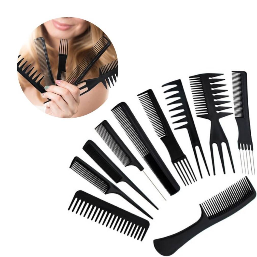 10 profesionālu veidošanas ķemmju komplekts. Šīs ķemmes ir drošas jūsu matiem, jo tās nebojā matu kutikulu, kad tās lietojat. Ķemmes ir karstumizturīgas, kas nozīmē, ka varat tās izmantot, žāvējot matus ar fēnu. Šim komplektam ir arī ērts futrālis, lai jūsu ķemmes būtu sakārtotas un viegli pārnēsājamas.