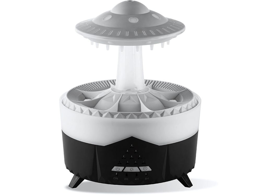 Gaisa mitrinātāja difuzora LED lampa NLO formā ar tālvadības pulti lietus funkcijai. NLO formas gaisa mitrinātājs un smaržu difuzors ir moderna ierīce, kas apvieno mitrināšanas, aromterapijas un LED lampas funkcijas, lai jūsu interjeram piešķirtu unikālu atmosfēru. Ierīcei ir iebūvēts "lietus" efekts, kas atdarina maigu ūdens krišanu, radot relaksējošu atmosfēru. Ar difuzora funkciju varat pievienot savas iecienītākās ēteriskās eļļas, lai piepildītu telpu ar patīkamu aromātu. Gaisa mitrinātājs ir aprīkots ar tālvadības pulti, kas ļauj ērti kontrolēt LED apgaismojumu. Tā futūristiskā NLO forma un funkcionalitāte padara to ideāli piemērotu guļamistabai, viesistabai vai birojam, radot mierīgu un patīkamu telpu. Pieejamās krāsas: lūdzu, izvēlieties krāsu tikai pirkuma veidlapā (veicot pasūtījumu). Ja informācija netiks sniegta, mēs nosūtīsim nejauši izvēlētu krāsu. - balta - melna Tehniskās specifikācijas: - funkcijas: mitrināšana, aromterapija - augstas kvalitātes dizains - ietilpība: - ļoti kluss - moderns dizains - RGB fona apgaismojums - viegli uzpildāms - automātiska izslēgšanās: pēc aptuveni... 4 h - barošana: - barošanas avots: tīkla adapteris ieeja maiņstrāva 100–240 V 50/60 Hz izeja līdzstrāva 24 V 650 mA - izmēri: - produkts ir CE sertificēts - krāsa: balta, melna Komplektā ietilpst: - NLO gaisa mitrinātājs - barošanas avots