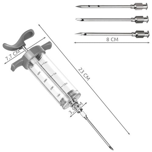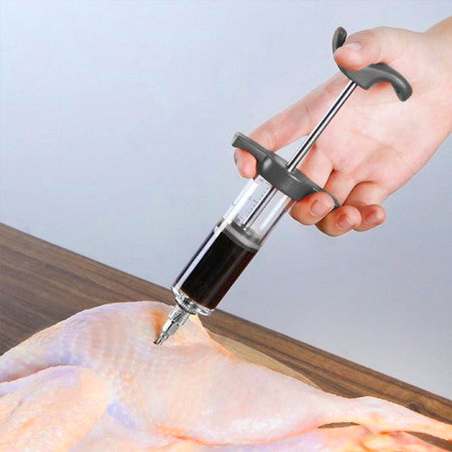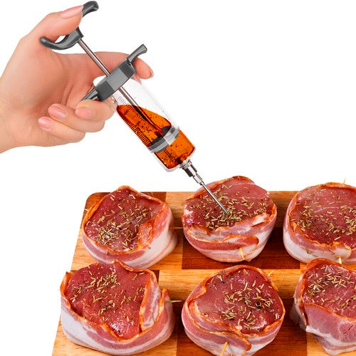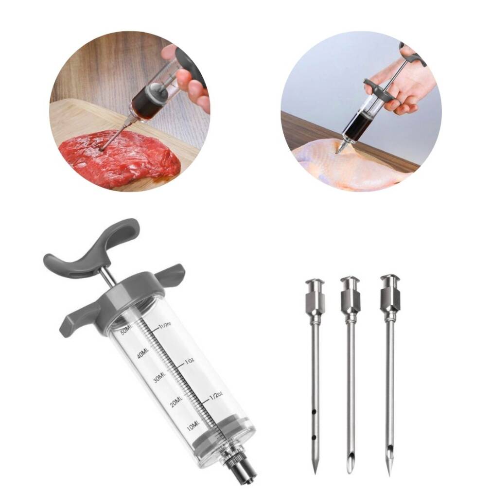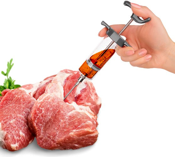 šļirci, lai injicētu gaļu ar sāls sālījumu vai garšvielām, padarot to gan
