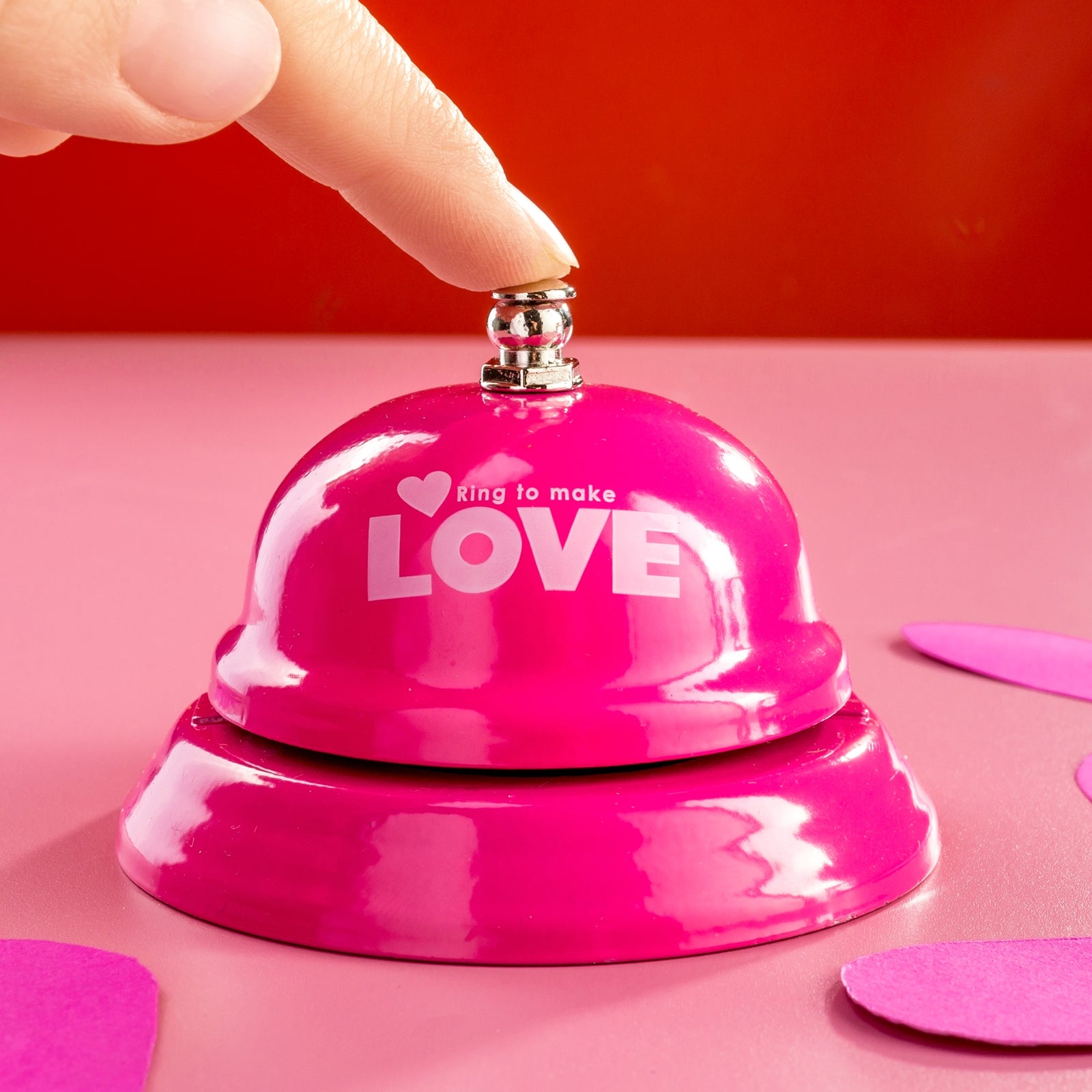 Ding Ding un mīlestība ir gaisā! Zvans "Zvans, lai padarītu MĪLESTĪBU" ir jauns, vienkāršs efektīvs bezvadu saziņas veids, lai saņemtu mīlestību vienmēr, kad jūtat vajadzību :) Vienkārši zvaniet, lai izteiktu savas dziļākās vajadzības. Funkcijas: - metāla galds Gredzens MĪLESTĪBAI - ar apdruku: Gredzens mīlestībai un maza sirsniņa - aizraujošā rozā krāsā - jauns bezvadu sakaru veids ne tikai guļamistabā - jauks ekoloģisks iepakojums