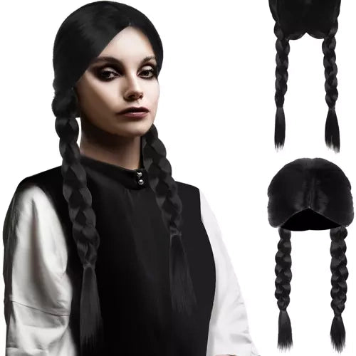Sieviešu garā parūka ar 2 bizēm, gatavas bizes – parūkai jau ir bizes! Raksturīgās mākslīgās melnās bizes pārsteigs ikvienu ne vienā, ne vienā ballītē. Izmērs – parūka pielāgojas galvas apkārtmēram no 52,7 līdz 57,3 cm. Tā der gandrīz ikvienai galvai. Jaunā parūka ir ietīta tīkliņā, lai tā nesapinētos. Ļoti kvalitatīvs produkts – mākslīgie mati, kas izgatavoti no izturīga materiāla, padara parūku ļoti izturīgu un izskatās lieliski. Vienkārša kopšana – sintētisko matu pareiza kopšana ir niecīgi vienkārša. Nav nepieciešams lietot papildu kosmētiku, kā tas ir dabisko matu gadījumā. Vienkārši izmazgājiet tos aukstā vai nedaudz siltā ūdenī ar nedaudz šampūna un pēc tam ļaujiet nožūt. Specifikācija – krāsa: melna; mati: sintētiski; der galvas apkārtmēram: no 52,7 līdz 57,3 cm; garums: 55 cm; svars: 159; svars iepakojumā: 169 g. specifikācija krāsa: melna mati: sintētiski der galvas apkārtmēram: 52,7 līdz 57,3 cm garums: 55 cm svars: 159 svars iepakojumā: 169 g