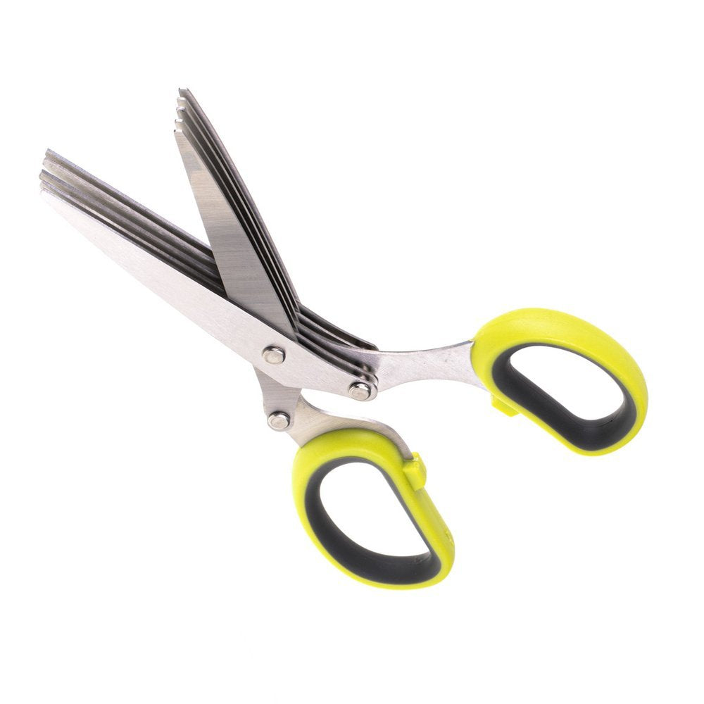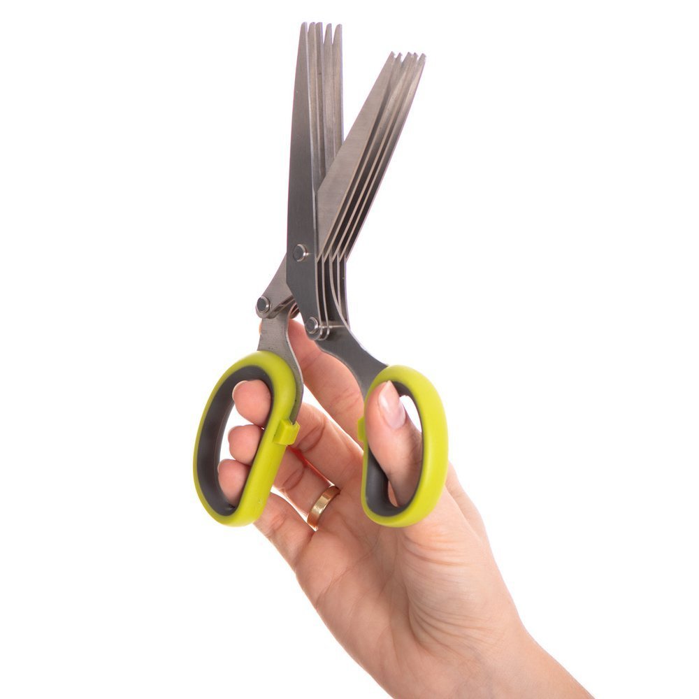 Smalcinātāja šķēres vienkāršai un ātrai garšaugu griešanai ar papildu tīrīšanas ķemmi. Jums nav nepieciešams griešanas dēlis, lai zupai pievienotu pētersīļus, maurlokus uz sviestmaizēm vai rozmarīnu cepetim. Ātri viegli :) Funkcijas: - 5 slāņu asas nerūsējošā tērauda asmeņu šķēres garšaugu griešanai - efektīva smalcināšana dažu sekunžu laikā - mīksts un neslīdošs rokturis ar ērtu pirksta caurumu izmēru - papildu ķemme atpūtas noņemšanai un tīrīšanai - ideāli piemērota brūnaļģu, nori griešanai, gaļa un dažādi garšaugi, piemēram, baziliks, pētersīļi, cilantro, piparmētra, maurloki, rozmarīns u.c. - ērti lietojams tīrīt praktisku daudzfunkcionāla virtuves palīga asmens materiāls: augstas kvalitātes nerūsējošā tērauda roktura materiāls: videi draudzīga PP plastmasa