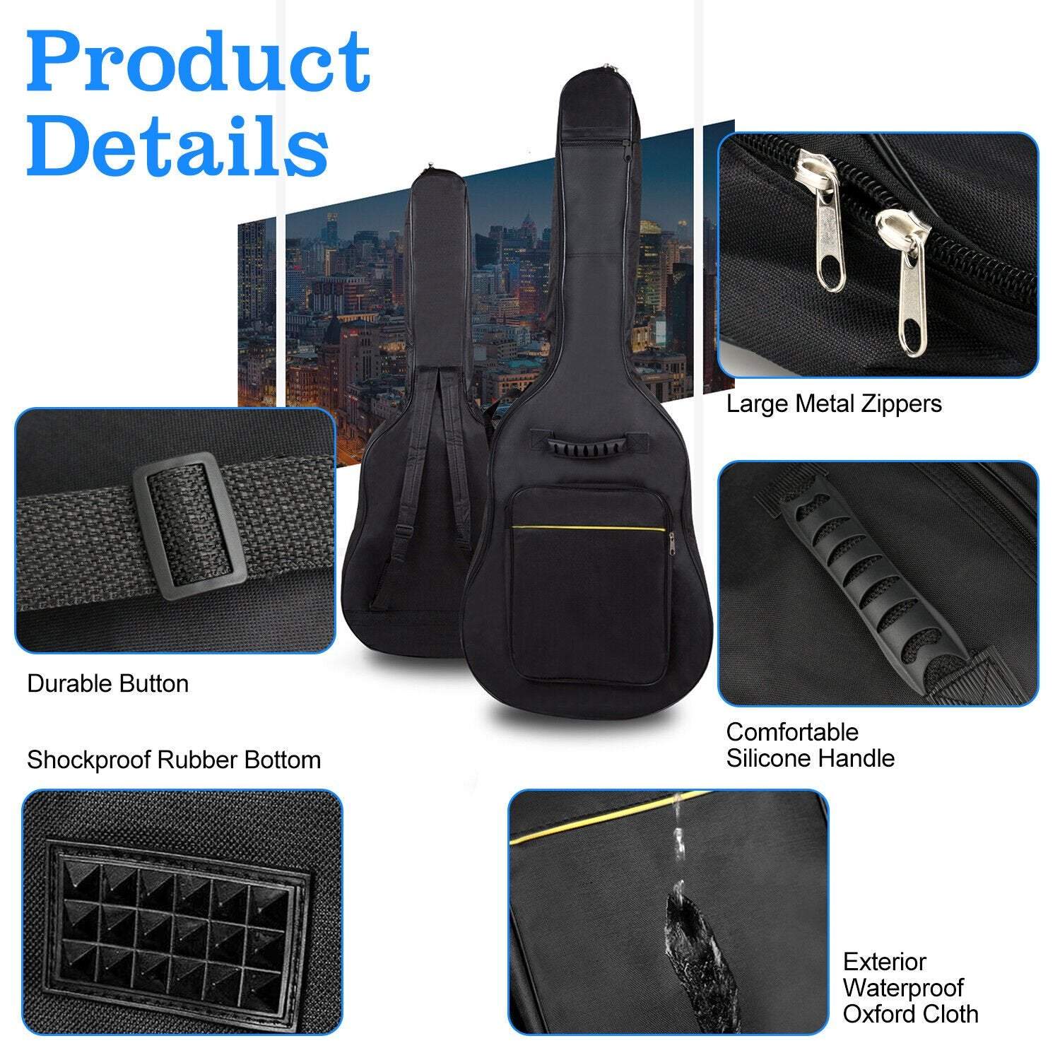 Pārvalks ir izgatavots no poliestera ar ļoti stingru un ciešu šūšanu, lai nodrošinātu paaugstinātu izturību pret nobrāzumiem, plīsumiem vai ūdens šļakatām. Turklāt korpuss ir aprīkots ar vairākām ērtībām, piemēram: gumijas statīvu, lai varētu droši novietot ģitāru uz zemes; regulējamas siksnas; ērti rokturi un cietas slēdzenes. Korpusam ir arī papildu nodalījumi, kuros var paslēpt tādas lietas kā instrumentu aksesuāri vai notis. Liels nodalījums ietilps A4 formātā!