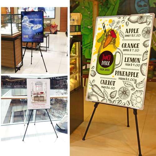 * Molberts var mainīt augstumu, pateicoties tā 3 sekciju kājām. Varat to