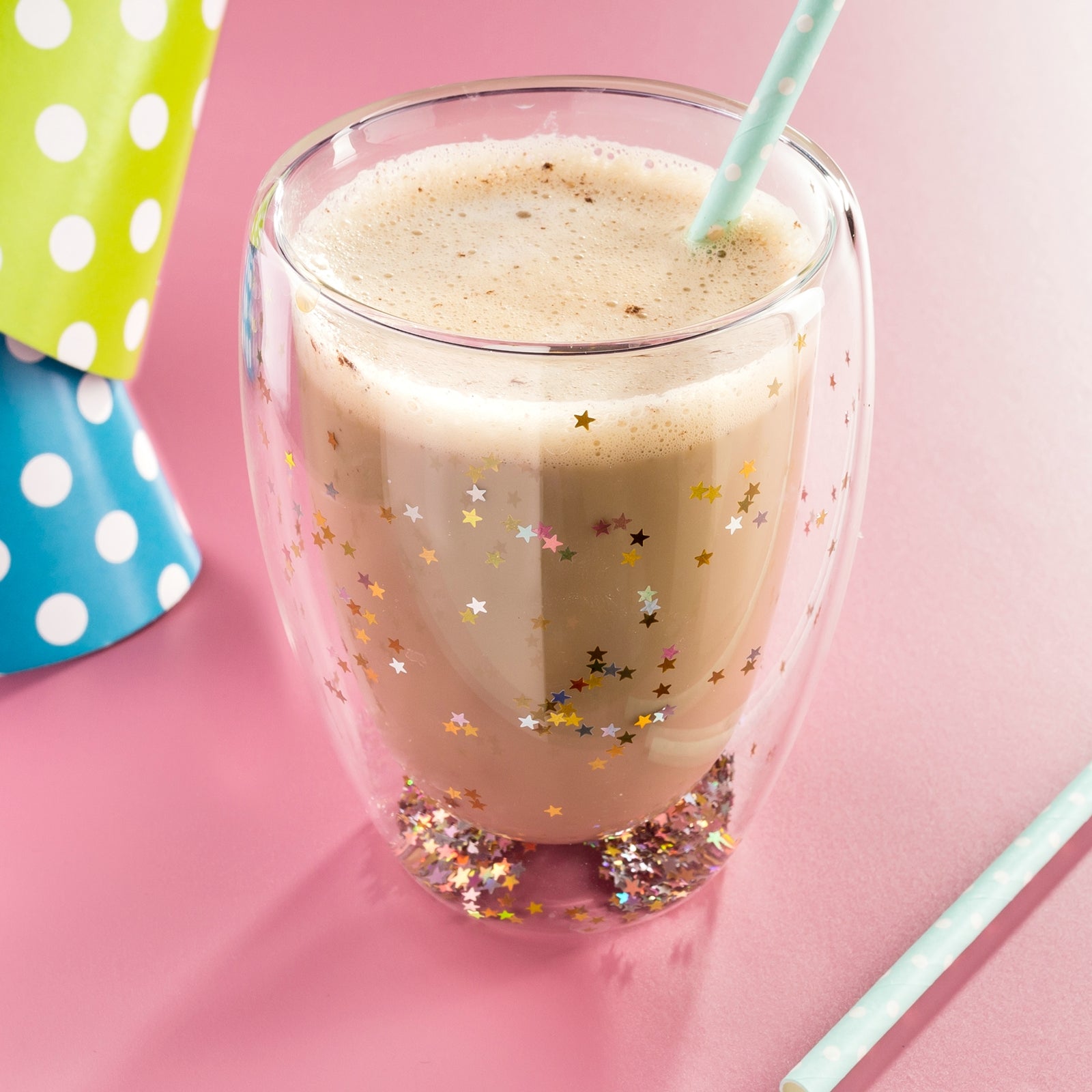 Ļoti jauks mirdzošs zvaigžņots stikls ar mirdzošiem fliteriem starp dubultsienām, lai sniegtu skaistus gaismas atspulgus un siltuma komfortu pirkstiem. Šāds stikls var piešķirt jums šarms un ir ideāls papildinājums jūsu virtuvei vai biroja galdam. Dubultās sienas ļauj ērti un bez raizēm turēt rokā karsto vai auksto dzērienu ilgāku laiku. Funkcijas: - mirdzošs zvaigžņots stikls ar mirdzošiem fliteriem - dubultsienas labākai izolācijai - dubultsienas, lai aizsargātu pirkstus pret karstumu un aukstos dzērienus ilgāk uzturētu atdzesētus - materiāls: augsts borsilikāta stikls: - netoksiska un droša gluda iekšējā virsma - viegli uzklājama tīrs, izturīgs un praktisks - piezīme: nav drošs mikroviļņu krāsnī vai trauku mazgājamā mašīnā - tikai ar rokām - jauka krāsaina dāvanu kastīte