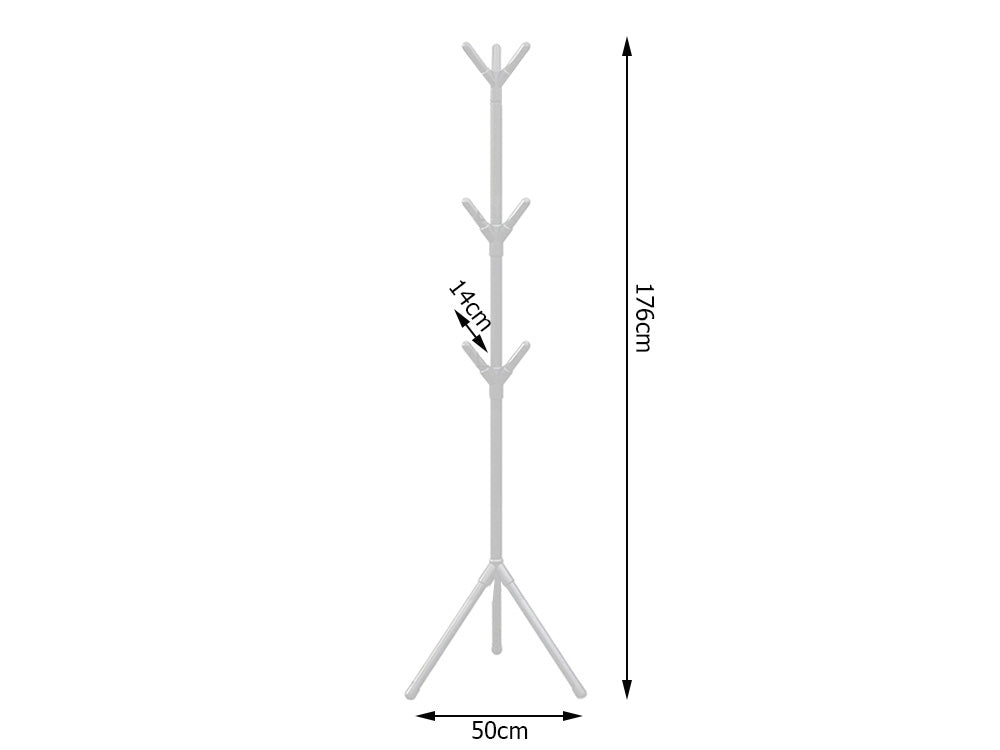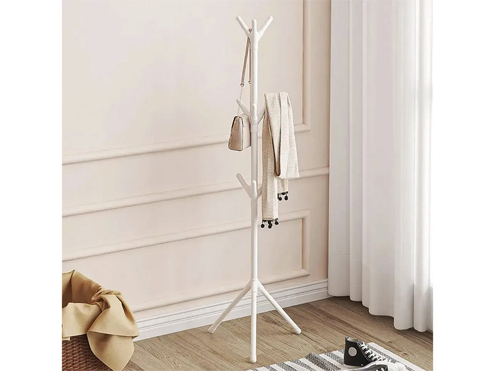Uz grīdas stāvošs drēbju pakaramais, metāla, balts, praktisks un moderns pakaramais, piemērots jebkurai vietai: mājām, birojam, veikalam vai frizētavai. Pakaramā konstrukcija ir stabila. Izgatavots no pulverkrāsota tērauda. Modelim ir 9 balsti, 3 katrā līmenī. Speciāli pārsegi, kas piestiprināti pakaramā cauruļu galos, ļauj droši pakārt drēbes, arī tās, kurām nav āķu riņķu. Līdzīgi pārsegi ir piestiprināti pakaramā kājiņu apakšpusē, tāpēc nav riska sabojāt grīdu. Tehniskās specifikācijas: - izturīgs, viegls dizains - trīs līmeņos - aizsardzība pret grīdas skrāpējumiem - ātra un vienkārša montāža - statīva augstums: - krāsa: balta. Komplektā ietilpst: - statīva pakaramais pašmontāžai