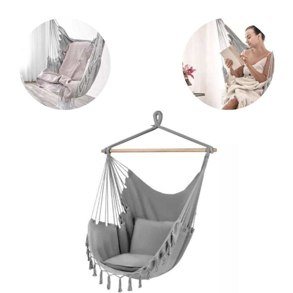 Maksimālam komfortam šūpuļtīklam ir divi mīksti spilveni. Tam ir arī koka