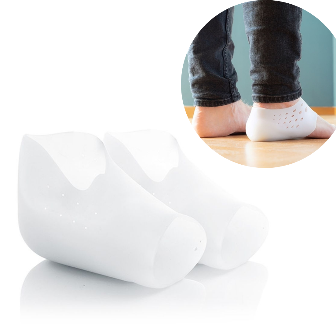 Ļoti elastīgi papēžu pacēlāji, kas ļauj viegli palielināt savu augumu par vairākiem centimetriem. Pateicoties silikona gēla tekstūrai un ergonomiskam dizainam, tie nodrošina lielisku satvērienu, relaksāciju un uzlabotu komfortu staigāšanas laikā. Turklāt tie ir higiēniski un videi draudzīgi, jo tos var mazgāt un atkārtoti izmantot tik reižu, cik vēlaties vai cik nepieciešams.