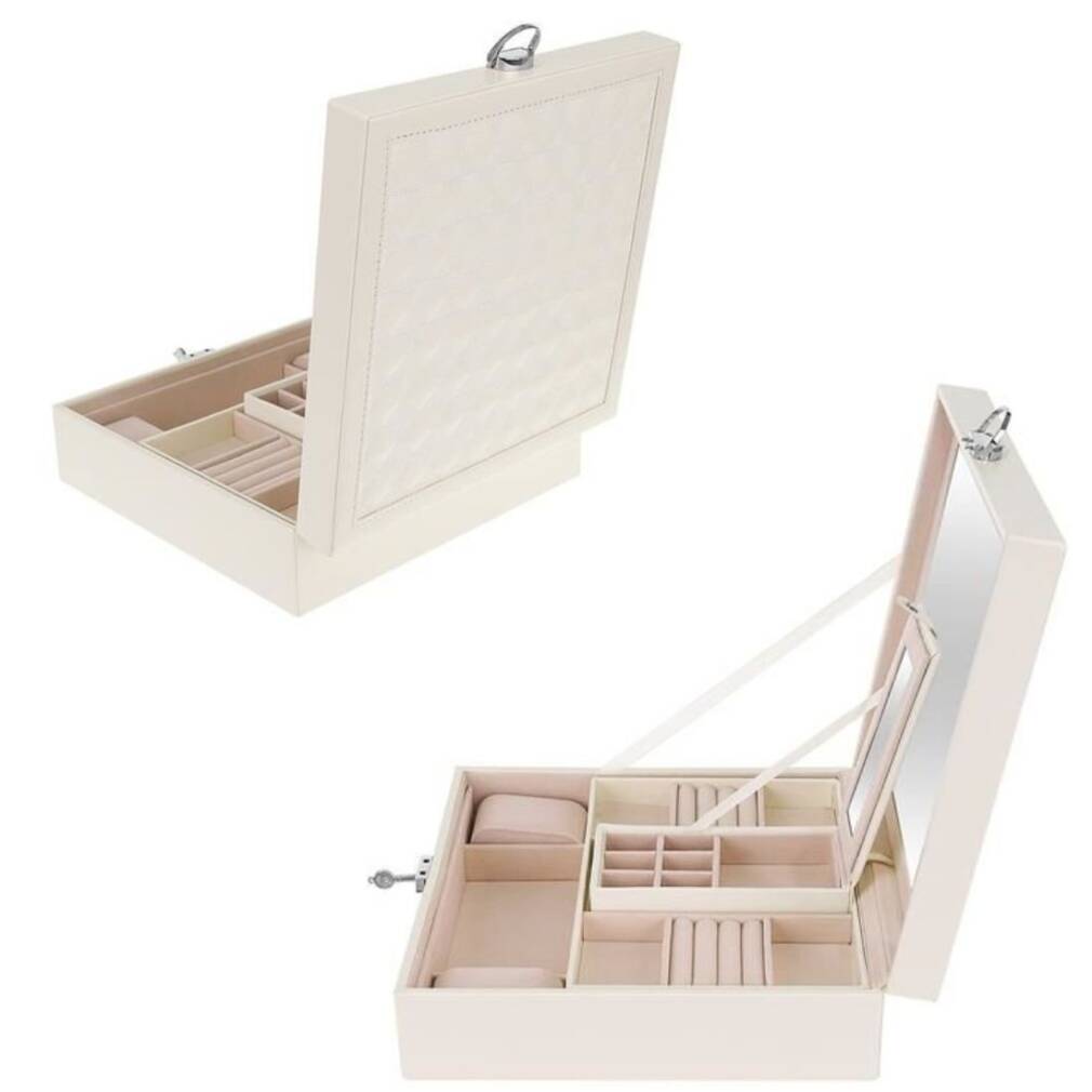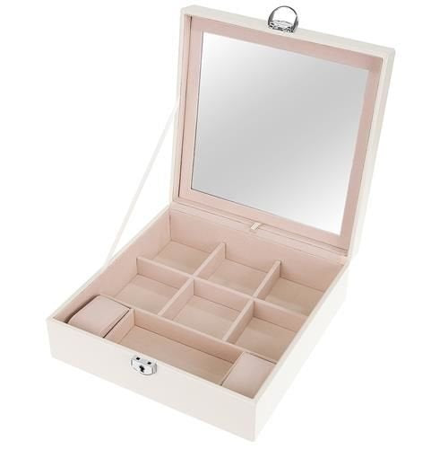 Rotu kastīte ar noliecamu spoguli. Šī funkcija ir lieliski piemērota juvelierizstrādājumu pielaikošanai vai grima uzklāšanai. Tieši zem spoguļa ir vēl viena glabāšanas vieta, kas ir ideāli piemērota īpaši vērtīgu priekšmetu glabāšanai.