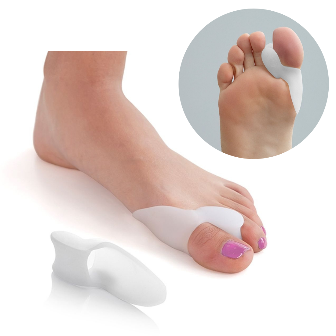 2 gab. silikona gēla korektoru-aizsargu komplekts pēdas kauliņiem.