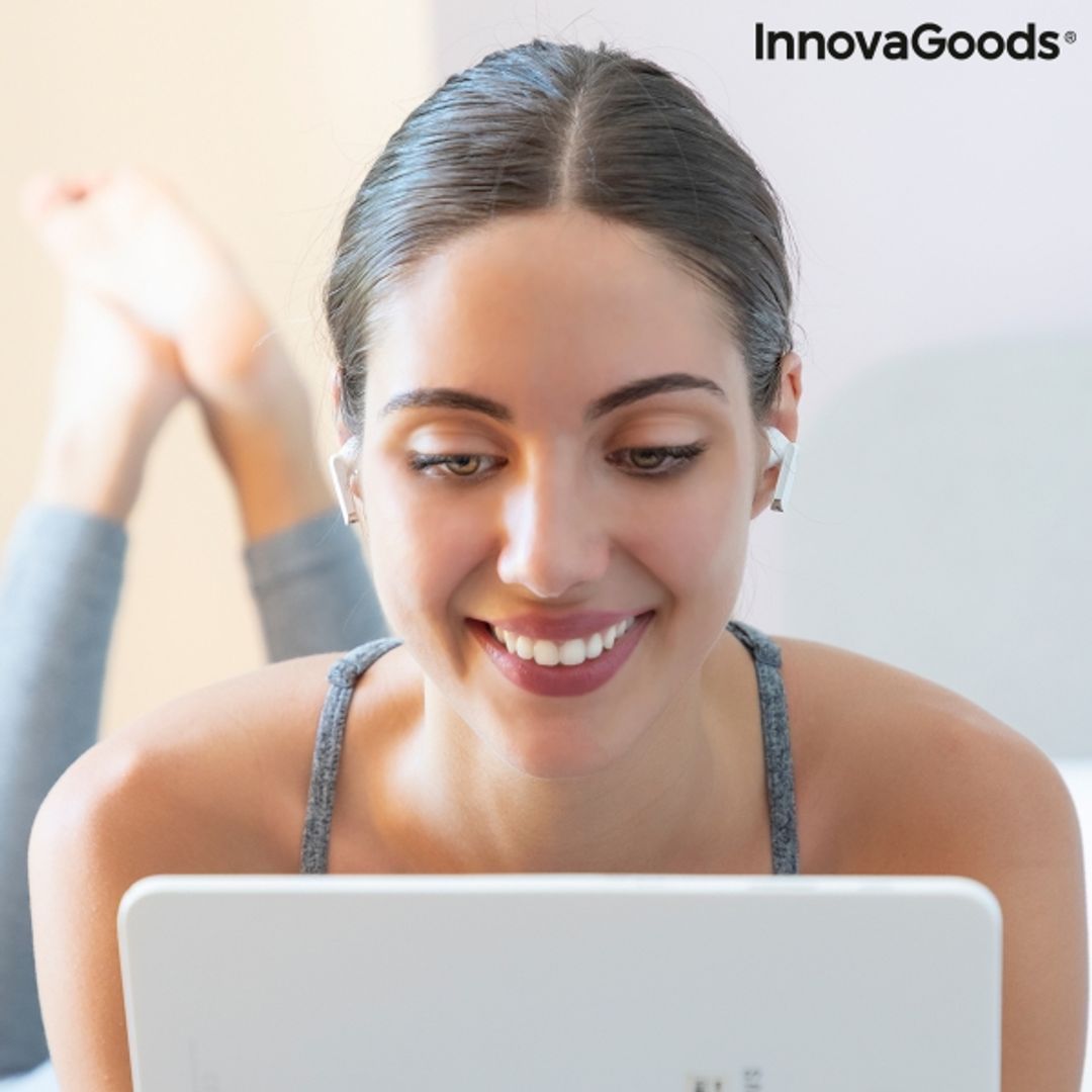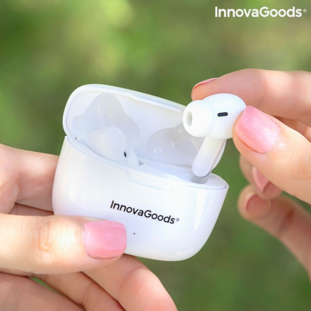 Bezvadu austiņas ar uzlādes futrāli, ideāli piemērotas, lai jebkurā vietā ērti klausīties mūziku.